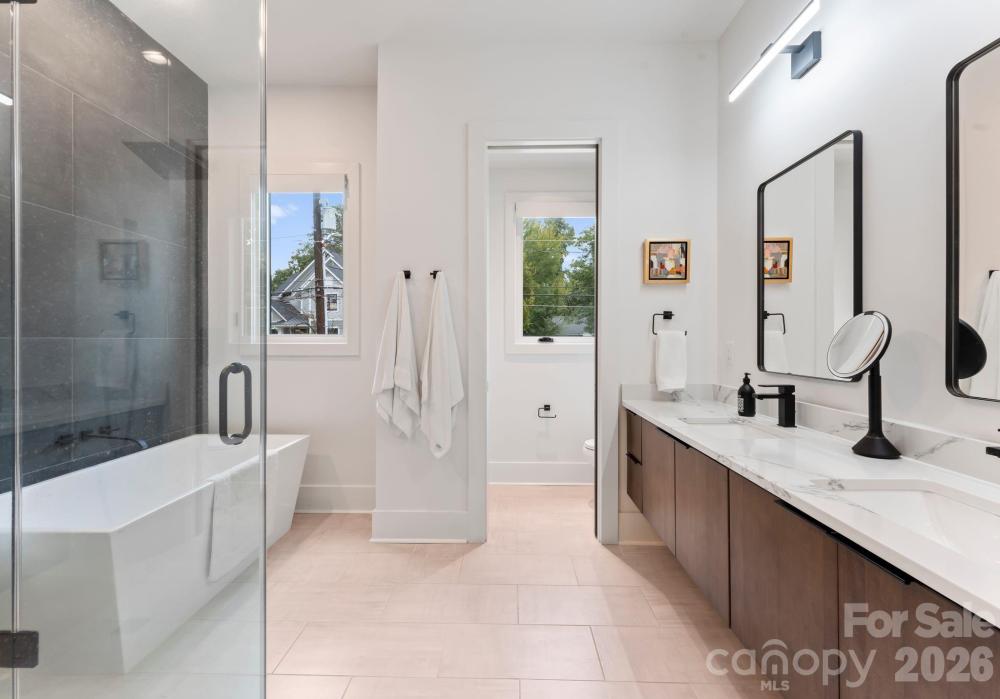 Defined by premier amenities, seamless indoor-outdoor living, and resort-style features, this exceptional custom residence offers elevated luxury in one of Charlotte’s most coveted and walkable locations. Complete with a private pool, expansive entertaining spaces, and two serene primary suites, the home is perfectly positioned between South End and Dilworth, placing the best of the city just outside your door. From this ideal setting, enjoy effortless walkability to South End’s celebrated restaurants, breweries, boutiques, cafés, and the Rail Trail, along with easy access to Dilworth’s charming streets and neighborhood favorites. Uptown is minutes away, with walkable access to Bank of America Stadium for Panthers games, concerts, and major events, while Charlotte Douglas International Airport is conveniently close for stress-free travel. Inside, a light-filled open floor plan connects the living, dining, and kitchen areas, designed for both everyday living and elevated entertaining. The chef’s kitchen features a striking waterfall soapstone island, quartz countertops, professional-grade appliances, and a butler’s pantry. The dining area opens seamlessly to a main-level patio through a dramatic glass garage-style door, creating a true indoor-outdoor experience. The main level hosts a serene primary suite with a spa-inspired bath, custom walk-in closet with integrated laundry, and an adjacent sitting room ideal for a home office or private breakfast space. Upstairs, a second expansive primary suite is joined by two additional guest bedrooms, a Jack-and-Jill bath, and a full laundry room. The lower level offers an entertainer’s retreat with a media wall, kitchenette, sauna, guest suite, and direct access to the backyard. Outdoors, a resort-style oasis awaits with a pool featuring water elements and LED lighting, a dedicated grilling station, and expansive patios designed for gathering. Thoughtful details, high-end systems, and refined finishes throughout make this home a truly rare offering in a premier Charlotte location.