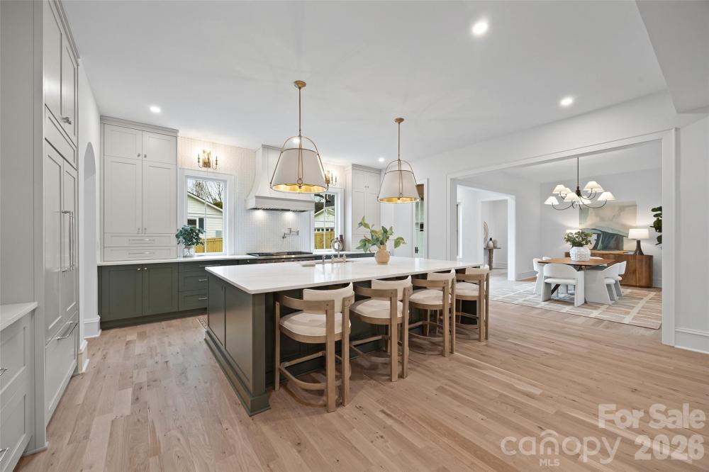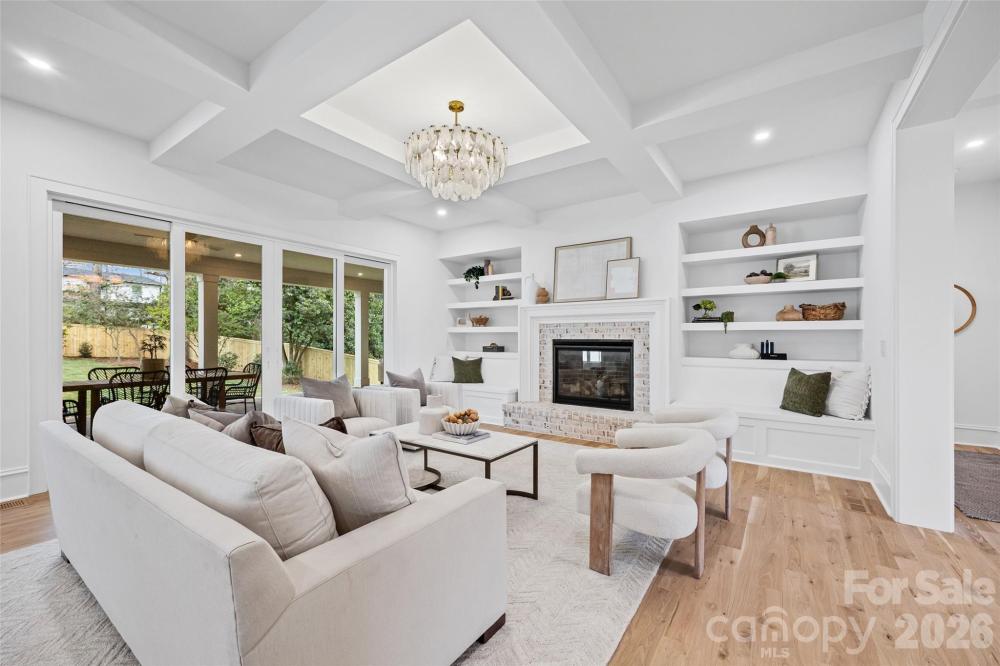 Spectacular move in ready new construction home built by Hestia Designs in sought after Providence Park on tranquil cul-de-sac street. This home features exceptional craftsmanship, luxury finishes and thoughtful design throughout with a beautiful blend of modern elements and southern charm creating the perfect traditional custom masterpiece. 5708 heated square feet, 5 spacious bedrooms, each with an en-suite bath utilizing gorgeous ceramic and marble tile, designer plumbing fixtures, furniture quality vanities and walk-in closets with custom wood finish shelving. Large covered front porch welcomes you inside to a grand foyer entry. 10-foot ceilings on both levels, white oak plank wood flooring throughout, 8’ doors and architectural detailing elevate every space. The gourmet kitchen is a true centerpiece with custom shaker style cabinetry, quartz countertops, tile backsplash, sconce lighting and an oversized workstation sink in the large island with barstool seating and ample storage. Top of the line appliances include: commercial-grade Wolf gas range, pot filler, Sub-Zero refrigerator, Wolf microwave drawer, ASKO paneled front dishwasher. Walk-through / working pantry with farmhouse prep sink and custom pantry storage with pull out drawers - perfect for entertaining and organization. Dining room perfectly positioned beside kitchen with sophisticated chandelier and amazing natural light. Large living room with coffered ceiling, gas fireplace with brick hearth flanked by custom built-in shelving and bench seating and large sliding doors to back covered porch. Custom bar with open shelving, full tile backsplash and beverage refrigerator. Office on main level with double panelled doors and walk-in closet. Serene primary suite on main level privately located on back side of home with architectural ceiling design and sliding doors to back covered porch. Spa-like primary bathroom with dual vanities, soaker tub, spacious zero entry shower with body sprayers, hand sprayer and large bench, walk-in closet and washer / dryer connection. Moody powder room with marble top vanity. Spacious laundry room with custom cabinetry, utility sink and closet. Upper level bonus room with full wall of windows and large storage closet. Private guest suite over garage with back staircase. Outdoor brick fireplace on expansive covered back porch with tongue and groove ceiling and ceiling fans - creating an inviting space year round. Professional landscaping and irrigation and attached 2-car garage with epoxy flooring. Additional highlights include dual staircases with sleek iron spindles, two mudrooms/entrances and professionally curated finishes throughout. The exterior showcases brick and James Hardie fiber cement shaker siding, decorative fascia and shutters, GAF Timberline architectural roofing and high-efficiency Andersen clad windows, all setting the tone for timeless curb appeal. Energy efficiency and comfort are enhanced by three tankless water heaters, a high-efficiency heat pump with gas furnace and an encapsulated crawl space with dehumidifier. This exceptional home seamlessly blends luxury, function and modern Southern charm. Conveniently located between Cotswold Village and Southpark. Tax Value reflects property prior to current home being built. 2-10 warranty will be transferred at closing.