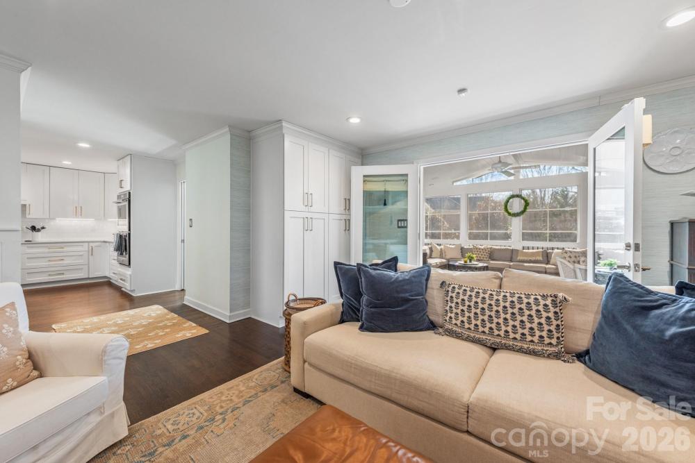 Just 15 minutes from Uptown Charlotte, 1108 Beauwyck Ct is discreetly positioned on a quiet cul-de-sac within the no-HOA enclave of Charlestowne Manor, a vibrant yet relaxed community where neighbors connect by choice, not obligation. Crafted in full brick, the residence offers nearly 2,500 square feet of thoughtfully renovated interiors, balancing classic architecture with contemporary livability in close proximity to SouthPark and Charlotte’s premier destinations. At the heart of the home, the spacious dine-in kitchen is designed for both everyday ease and effortless entertaining. Anchored by a generous center island framed by custom built-in cabinetry, the kitchen is equipped with a five-burner KitchenAid gas range and double ovens, creating a setting equally suited for intimate dinners or larger gatherings. The space opens naturally into the family room, where tailored built-ins and a fireplace lend warmth and architectural interest. French doors extend the living experience outdoors, opening to a substantial screened porch with EZ Breeze windows, offering year-round enjoyment and seamless indoor-outdoor flow. Just off the kitchen, a mudroom and utility room provide a direct connection to the side-entry garage, enhancing functionality without disrupting the home’s aesthetic. A flexible main-level room with pocket doors adapts easily as a home office, formal dining space, playroom, or library—designed to evolve with changing needs. The upper level is anchored by a serene primary suite, featuring a walk-in closet and a refined spa-style bath highlighted by an oversized marble shower. Two additional bedrooms offer comfortable accommodations, while the third-floor bonus level introduces exceptional versatility, well-suited for a private office, studio, media lounge, or guest retreat. Outdoor spaces are equally considered, with a Trex deck, natural gas grill, and professionally landscaped, fenced grounds creating a polished backdrop for entertaining or quiet retreat. Offering a rare combination of location, architectural integrity, and modern refinement, 1108 Beauwyck Ct presents an opportunity to enjoy sophisticated living within a connected community—moments from the heart of Charlotte, yet comfortably removed.