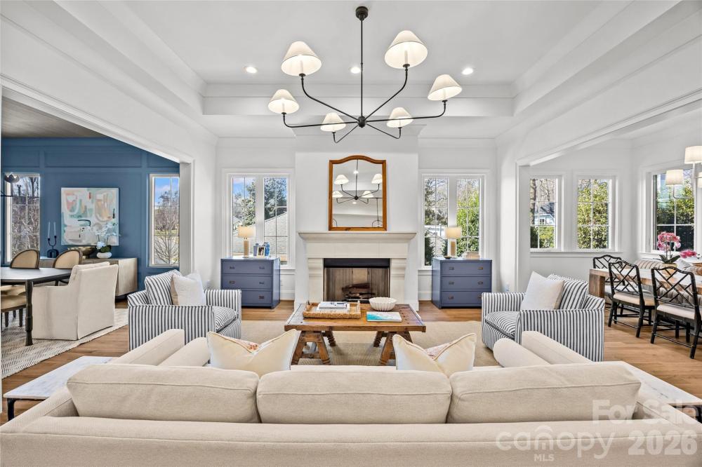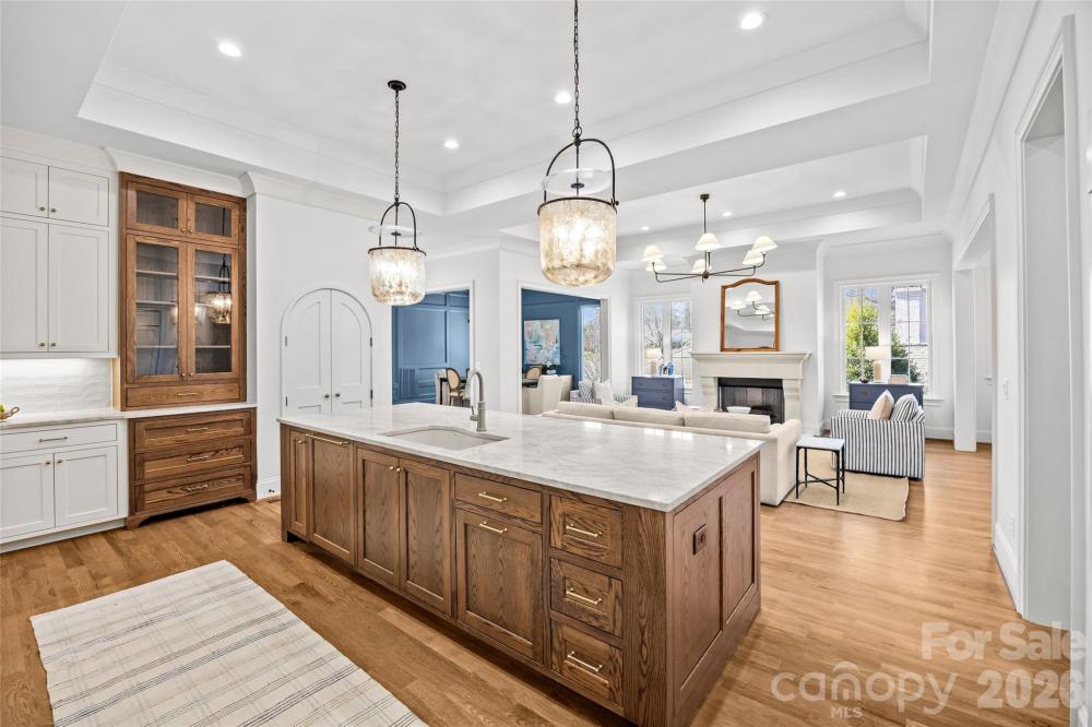 This exceptional custom home offers over 5,200 square feet of beautifully designed living space with five bedrooms and five and a half bathrooms, thoughtfully crafted for both everyday comfort and elevated entertaining. The primary suite is conveniently located on the main level, creating a private retreat complete with separate his and her walk-in closets. The spa-inspired primary bath features custom cabinetry and a dedicated makeup vanity area, blending function with refined design. Even better, the laundry room connects directly to one of the primary closet for seamless daily living. At the heart of the home is a stunning custom kitchen designed to impress. It includes a scullery for additional prep space, a walk-in pantry, a built-in coffee bar, and a cozy office nook for managing daily tasks while staying connected to the main living area. For those needing more privacy, a designated office provides a quiet and professional workspace. The dining room makes a bold statement with it's custom paneling, designer light fixture, and grasscloth ceiling, adding texture and warmth. Just off the kitchen, a bright sunroom or breakfast nook offers the perfect spot for casual meals and morning coffee. Upstairs, a spacious bonus room provides endless flexibility for a media room, playroom, or lounge. Multiple flex spaces throughout the home allow for a homework nook, craft room, reading space, or whatever your lifestyle requires. A dedicated workout room makes prioritizing health and wellness effortless. Each secondary bedroom is generously sized, with beautifully appointed bathrooms throughout. And don't miss the main floor powder room with it's showstopping custom viola calacatta marble vanity paired with stunning mural wallpaper, creating a true designer moment! Practical spaces include a functional mudroom and an attached two-car garage for convenience and storage. Outdoor living is just as impressive. A covered patio features a full kitchenette and fireplace, making it ideal for entertaining year-round. The large, fenced-in backyard provides ample room for play, or pets. With thoughtful details, luxury finishes, and versatile spaces throughout, this home offers the perfect blend of elegance, comfort, and functionality — designed to grow with you for years to come! Come take a look, and make this gem of a home yours!