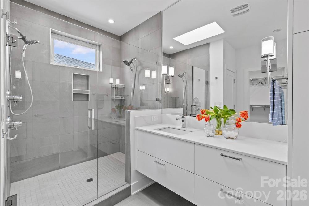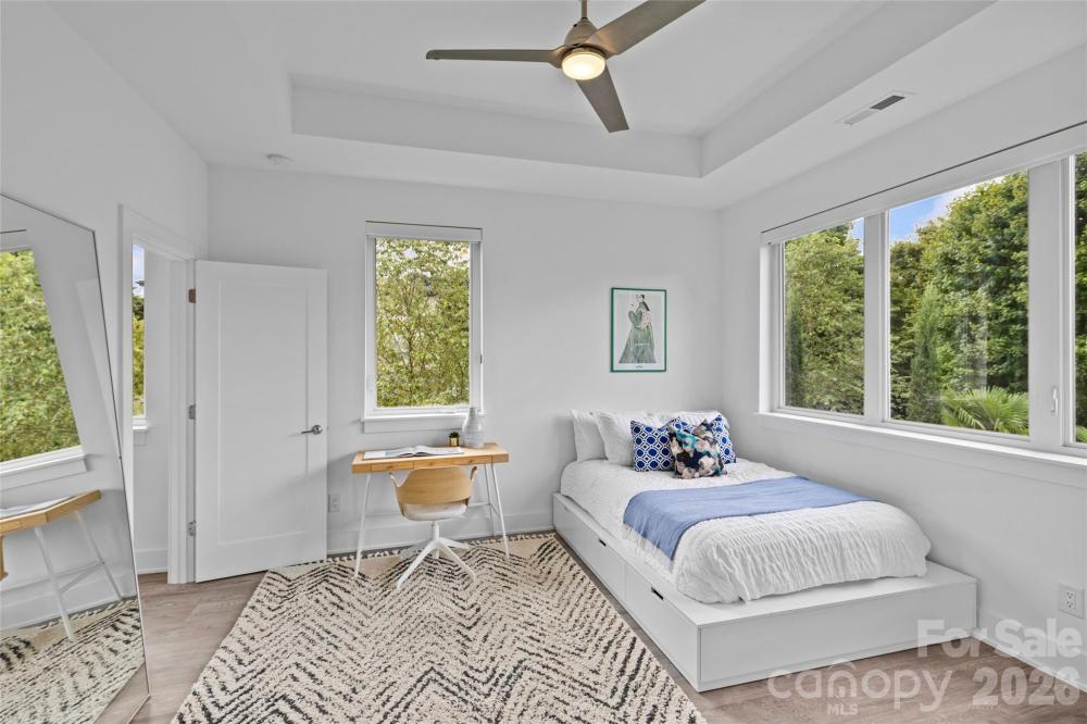 Boasting thoughtful design and high-end finishes, this home is ready to impress a buyer with an unmatched appreciation for the best that style and modern technology have to offer. As the premier solar home community in south Charlotte, this neighborhood is perfectly situated in proximity to expressways, shopping, and uptown. Within its almost 3,000 square feet of living space, 3 bedrooms, and 2.5 baths, every convenience has been considered, from the tankless water heater to the Italian cabinetry to the solar panels and the enviable low carbon footprint. Step inside and be greeted by natural light, bright spaces, high ceilings, and modern touches. The kitchen is an entertainer's dream, with its large solid surface island, pantry, stainless steel appliances, and oversized windows. Step into the backyard and enjoy this corner lot with its high wooden privacy fence, as well as a covered sitting area ideal for a good late night conversation or a hot morning coffee. Take the staircase to the second floor and find three bedrooms and a media/bonus room, all finished with the same attention to detail and functionality. The primary bedroom possesses an oversized frameless glass shower, dual vanity, and huge walk-in closet. Off the media/bonus room is a large balcony, perfect for seeing the stars or catching some rays. The neighborhood is tucked into a perfect nook in Sherwood Forest, with no thru traffic and enviable privacy, as well as an excellent, close-knit community. The finished two-car garage--with its storage shelving and high ceilings--offers even more practical consideration. This home is a perfect blend of style and function, ideal for the most sophisticated buyer.