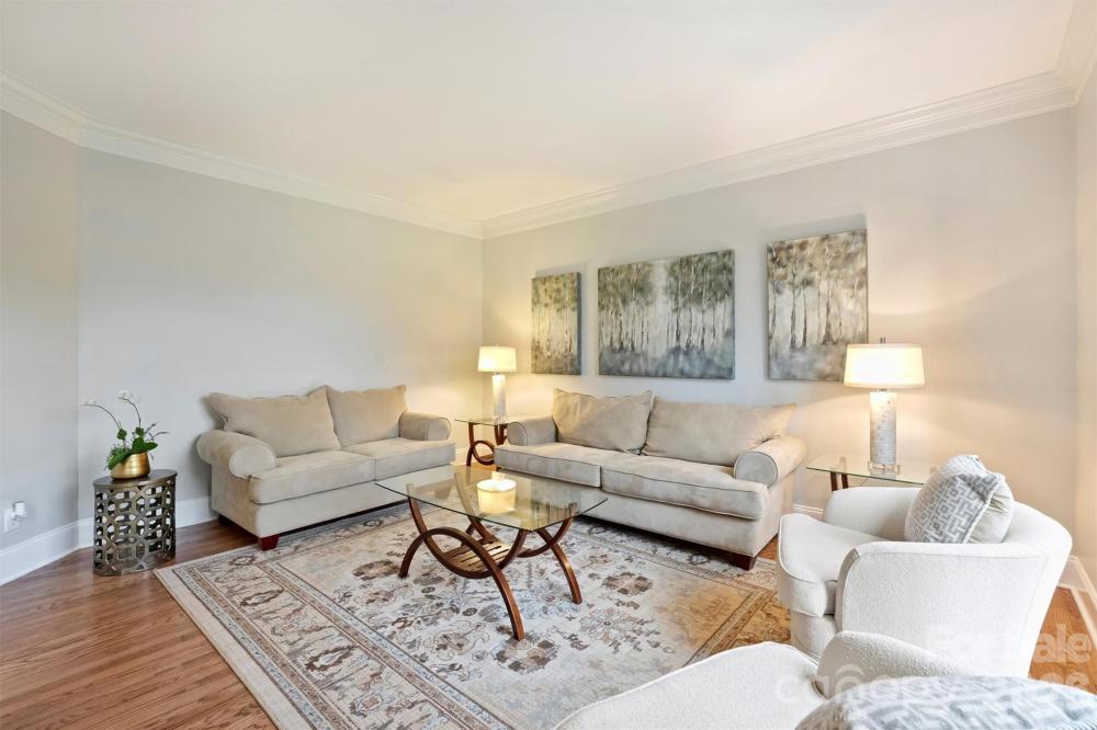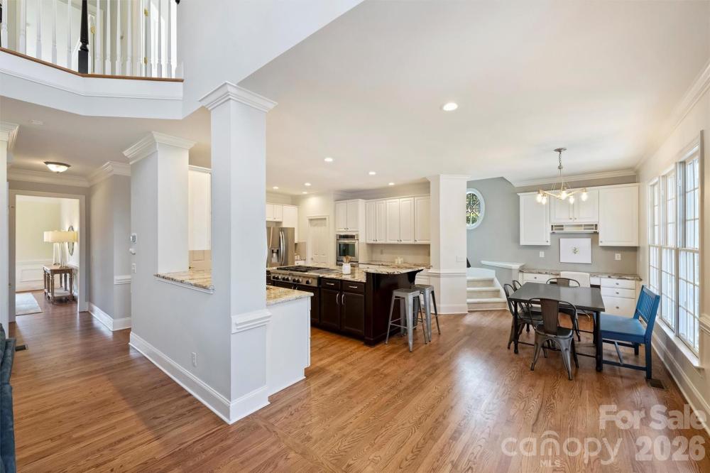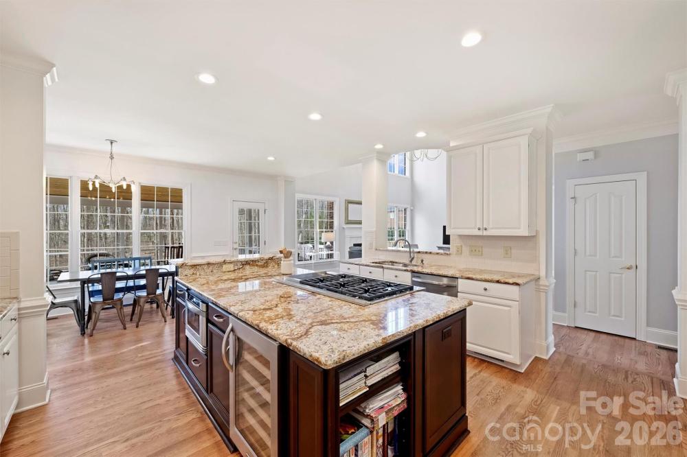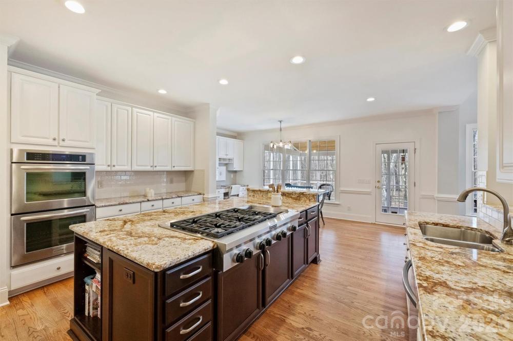 Exceptional property on a quiet cul de sac in Providence Country Club. This lovely full-brick residence offers the perfect blend of luxury and functionality, situated on a serene lot that backs to a wooded area that is maintained by the HOA. Inside, you’ll find a light-filled, open floor plan featuring a fresh interior decor, highlighted by new lighting and paint inside and out, new front door, renovated baths, sparkling hardwood floors and recent carpet. The 2-story foyer is flanked by a large living room and dining room. The main level is highlighted by a 2-story great room with beautiful windows and a fireplace adjacent a handsome room with built-in cabinetry—this also makes for an ideal home office. The gourmet chef’s kitchen is designed for entertaining, boasting an oversized island, KitchenAid 6-burner 48" gas cooktop with griddle, double ovens, and a wine fridge. The second level provides generously-sized bedrooms and a large play room/5th bedroom with a second staircase access to the kitchen. The primary suite is a true retreat featuring a tray ceiling and a beautifully updated bath. The secondary bathroom has also been smartly updated. Seen from the breakfast area, the large screened porch and deck overlook the sunny and regraded back yard and the wooded common area. The yard is meticulously manicured with front beds lined with stack stone borders and the front yard was regraded too. Side entry 3-car garage and massive attic storage. Perfectly located near schools, dining, and shopping at Waverly/Rea Farms, with easy access to I-485 and Ballantyne’s popular Bowl. A short walk to the Fountains for restaurants, shopping, and other amenities.