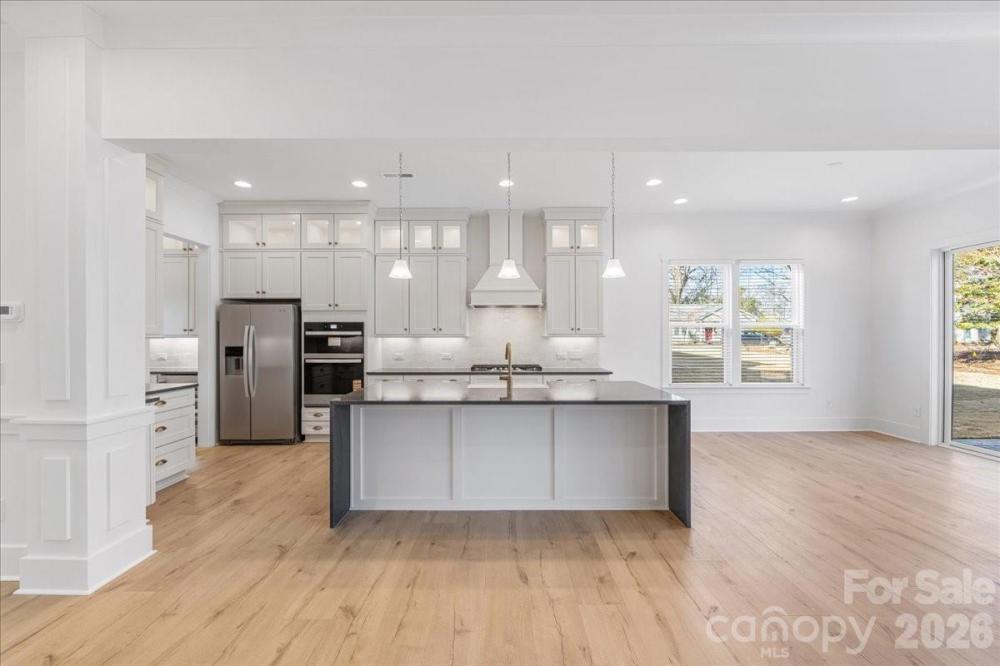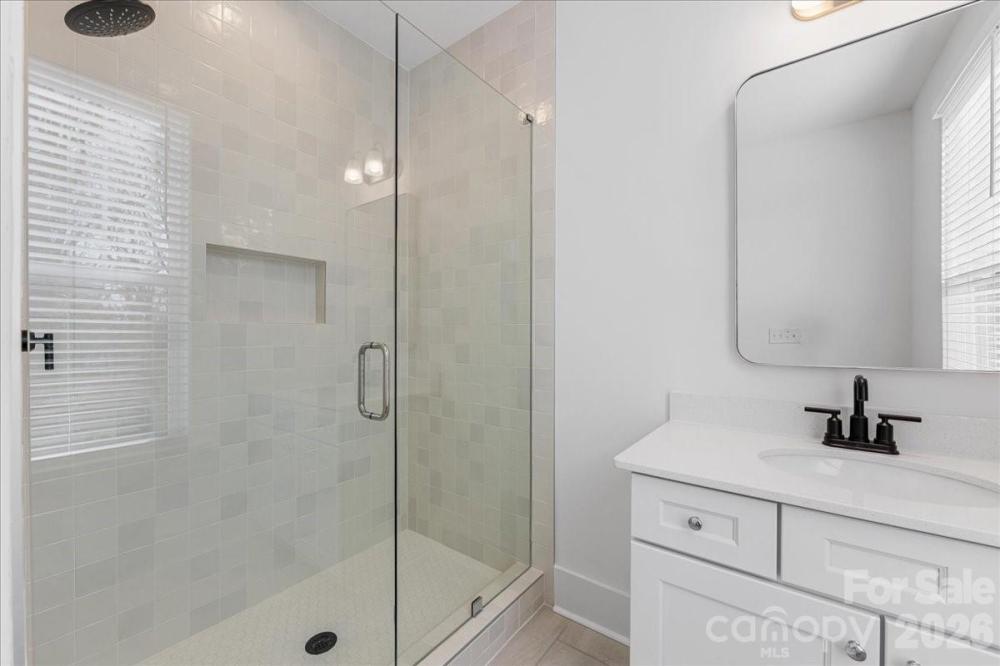 Stunning new construction in the highly sought-after Oakhurst neighborhood. This home offers a thoughtfully designed open floor plan with elevated, high-end finishes throughout. Wide-plank hardwoods flow seamlessly through the main living areas, creating a warm and inviting atmosphere perfect for both everyday living and entertaining. The chef’s kitchen is the heart of the home, featuring custom cabinetry, quartz countertops, a large center island with waterfall edge, designer lighting, tile backsplash, stainless appliances, and a walk-in pantry for ample storage. The open-concept layout connects the kitchen to the spacious living area, highlighted by a beautiful stone fireplace with wood mantle and abundant natural light. The dual sided fireplace creates a cozy den sunroom for additional living space on the main level. A convenient drop zone keeps daily life organized, while the upstairs laundry room adds ease and functionality. The primary suite is located upstairs and serves as a true retreat, complete with a luxurious en suite bath featuring a large walk-in shower, separate soaking tub, dual vanities, and a private water closet. Secondary bedrooms are generously sized with great natural light and ample closet space. Blending modern design with timeless details, this Oakhurst home delivers comfort, style, and exceptional craftsmanship in one of Charlotte’s most desirable neighborhoods.