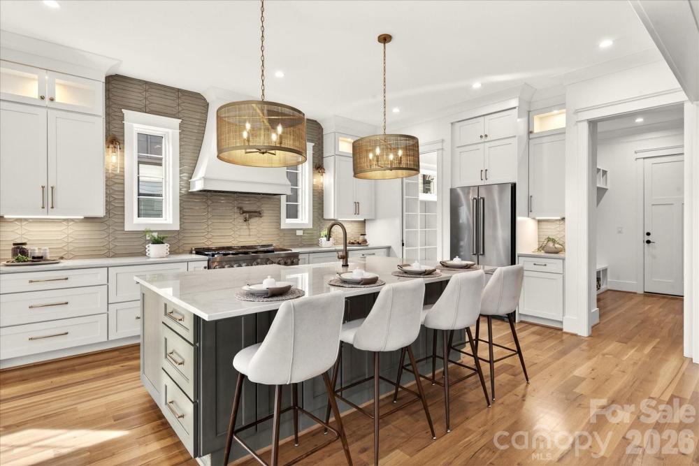 Discover Exceptional New Construction in Oakhurst! Nestled on a rare half-acre lot with mature trees, this stunning home blends modern luxury with timeless charm. Step inside to an open-concept floor plan designed for effortless living and entertaining. The chef’s kitchen is a showstopper, featuring an attached scullery, custom cabinetry, elegant Quartzite countertops, and a premium 48” KitchenAid range. Flow seamlessly into the spacious family room, complete with custom built-ins, a stylish bar area, and oversized sliding doors that open to a screened-in porch overlooking a huge fenced backyard - perfect for indoor/outdoor living. Retreat to the primary suite, boasting two walk-in closets and a spa-inspired bath for ultimate relaxation. Upstairs, enjoy a bonus room with a wet bar, ideal for game nights or movie marathons. Additional highlights include an outdoor kitchen, designer lighting and plumbing fixtures, white oak floors throughout, Anderson windows, energy-efficient foam insulation, Rinnai tankless water heater with circulating lines, Cat 6 wiring for modern connectivity, and a double-insulated garage door. This home offers luxury, functionality, and space, all in one of Charlotte’s most desirable neighborhoods. Don’t miss your chance to make it yours!