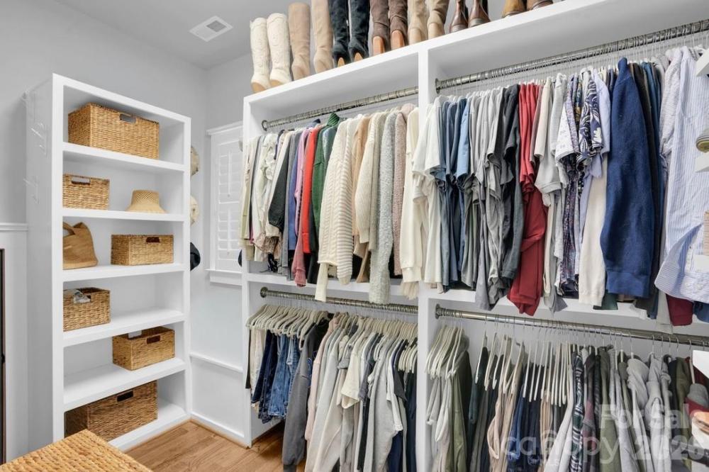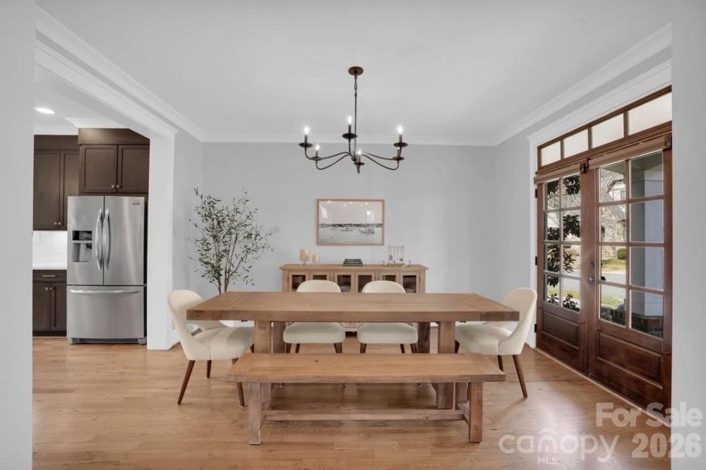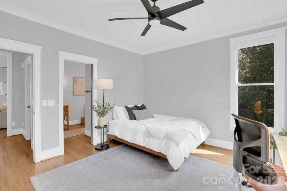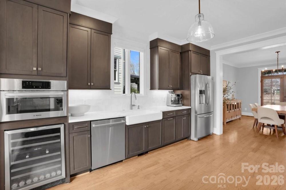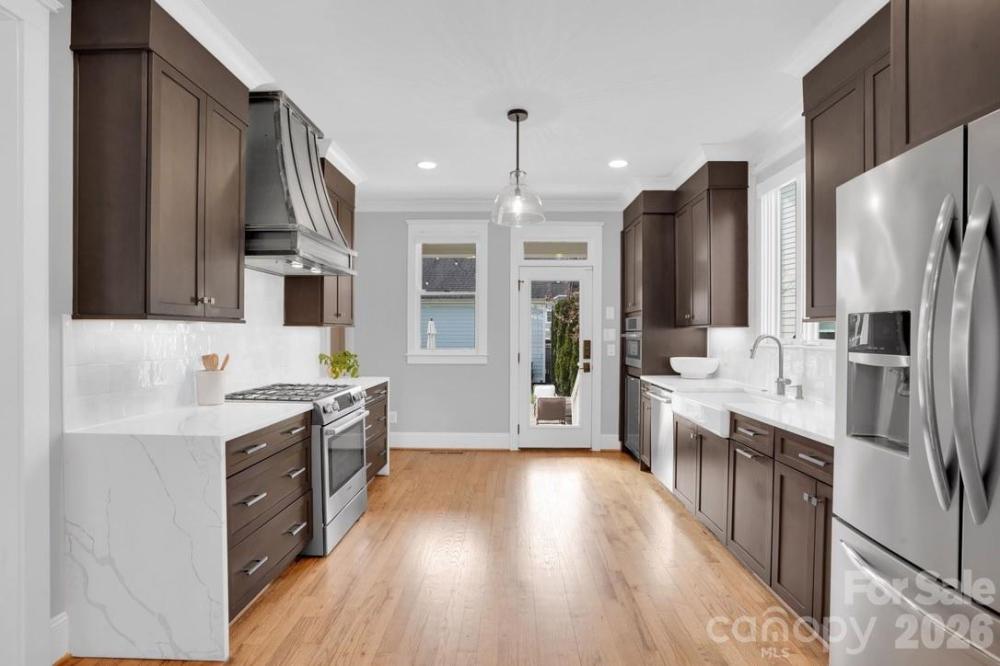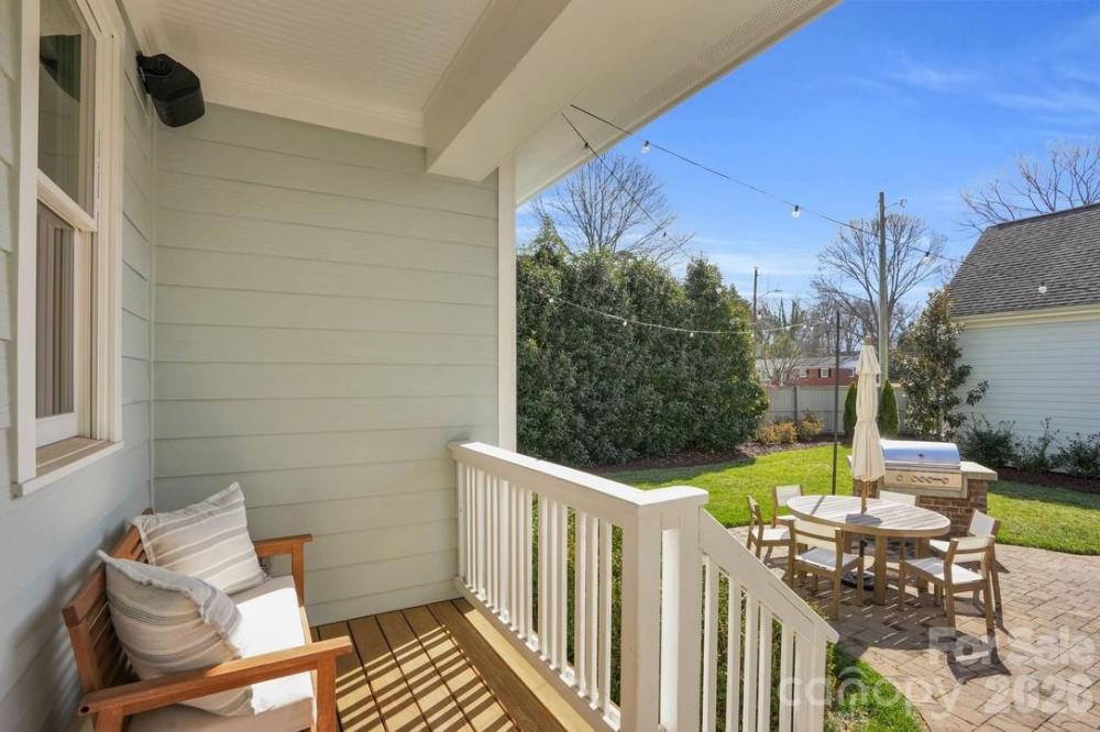 Experience the perfect blend of timeless craftsmanship & modern sophistication in this custom-built Grandfather Homes residence nestled in between the highly sought after neighborhoods of Ashbrook & Sedgefield in an intimate 15-home community just minutes from multiple parks, the 19-mile Little Sugar Creek Greenway/Bike Trail, plus all the restaurants & entertainment in SouthEnd. Designed for both everyday living & effortless entertaining, the main level features an open floor plan with 10-foot ceilings, rich hardwood floors throughout, solid-core 8-foot doors, coffered and trey ceilings, and custom lighting including recessed lights, pendants, sconces, and ceiling fans. A contemporary linear stone fireplace anchors the living room, flanked by custom built-ins by Kauffman Furniture. Interior and exterior ceiling speakers elevate both quiet evenings and lively gatherings. The expansive kitchen is a true showpiece, offering stunning quartz countertops, elongated tile backsplash, custom cabinetry, stainless steel appliances including a wine cooler, gas cooktop with electric oven, striking range hood, & a generous pantry. Whether hosting dinner parties or enjoying a quiet meal at home, this kitchen delivers style and function in equal measure. With three spacious bedrooms, each featuring its own private bath and large closet, comfort and privacy abound. A secondary main-level suite includes a luxurious bath with quarts counters, tub, and custom tiled shower. Upstairs, the primary suite offers trey ceilings, a large walk-in closet with custom built-ins, dual vanities with quartz counters, private water closet, and a massive walk-in shower with digital controls for a true spa-like experience. Two large walk-in attic areas provide exceptional storage. Outdoor living is just as impressive. The fully fenced backyard creates a private retreat complete with lush landscaping, a generous paver patio, built-in gas grill, and even a tucked-away reading nook/deck for peaceful moments. The welcoming front porch invites morning coffee and afternoon drinks with neighbors, embodying the charm of this close-knit community. The neighborhood hosts fun get togethers/events including cookouts in the cut-de-sac! A detached garage offers incredible main-level storage plus its own 500+sf unfinished attic which could be converted to a 4th bedroom/2nd living quarters, bonus room, or home office. Recently updated with modern flair while preserving its craftsman character, this home seamlessly combines thoughtful design, premium finishes, and an unbeatable location. Less than 1 mile to Freedom Park & Park Road Shopping Center. This is more than a home—it’s a lifestyle.