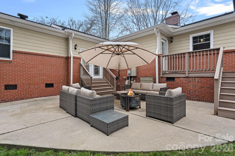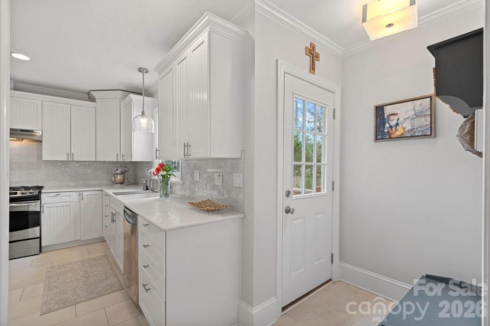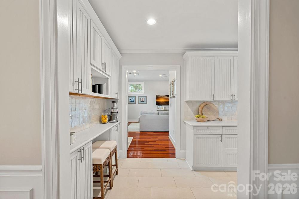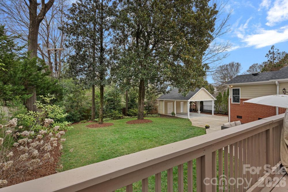 Welcome to this beautifully appointed home in Myers Park, where timeless character meets modern convenience. This updated ranch with a welcoming front porch sits on a friendly street, ideally positioned near many of Charlotte’s most beloved destinations. Throughout the home, fresh paint, traditional wainscoting, curated lighting, and hardwood or tile flooring underscore its classic character while the open, modernized layout supports today's lifestyle. The thoughtfully renovated kitchen showcases quartz countertops, a Zellige tile backsplash, Kingston Brass faucet, Rohl sink, stainless steel appliances, built-in cabinetry with coffee/espresso bar and drop zone access to the backyard. The stately living room with fireplace flows seamlessly into the formal dining room enhanced with additional cabinetry and dry bar coupled with wine fridge. Both have been updated with elegant chandeliers and scones. A sunlit breakfast nook transitions to the expansive family room, designed for both relaxed daily living and sophisticated entertaining. Double doors open to the back deck, while a discreetly placed half bath and laundry area complete this inviting gathering space. Privately situated on the opposite wing, the primary suite is a serene retreat, featuring French doors that open gracefully to the backyard and custom-fitted closet. Secondary bedrooms also offer tailored storage solutions. The renovated hall bath introduces a new vanity, mirror, and sconces, complemented by striking Schumacher wallpaper, while preserving the original tilework for a touch of timeless appeal. Outdoors, the meticulously maintained grounds provide a secluded oasis with mature landscaping, an extended-height privacy fence, in-ground irrigation, and an automated gate for added discretion. The two-car carport with wired storage presents exceptional flexibility, whether retained as-is or reimagined as a garage or future ADU. This home offers an exceptional balance of tradition, luxury, and convenience just minutes from Selwyn Avenue, Montford Drive, Park Road Shopping Center, and the scenic Cross Charlotte trail!
