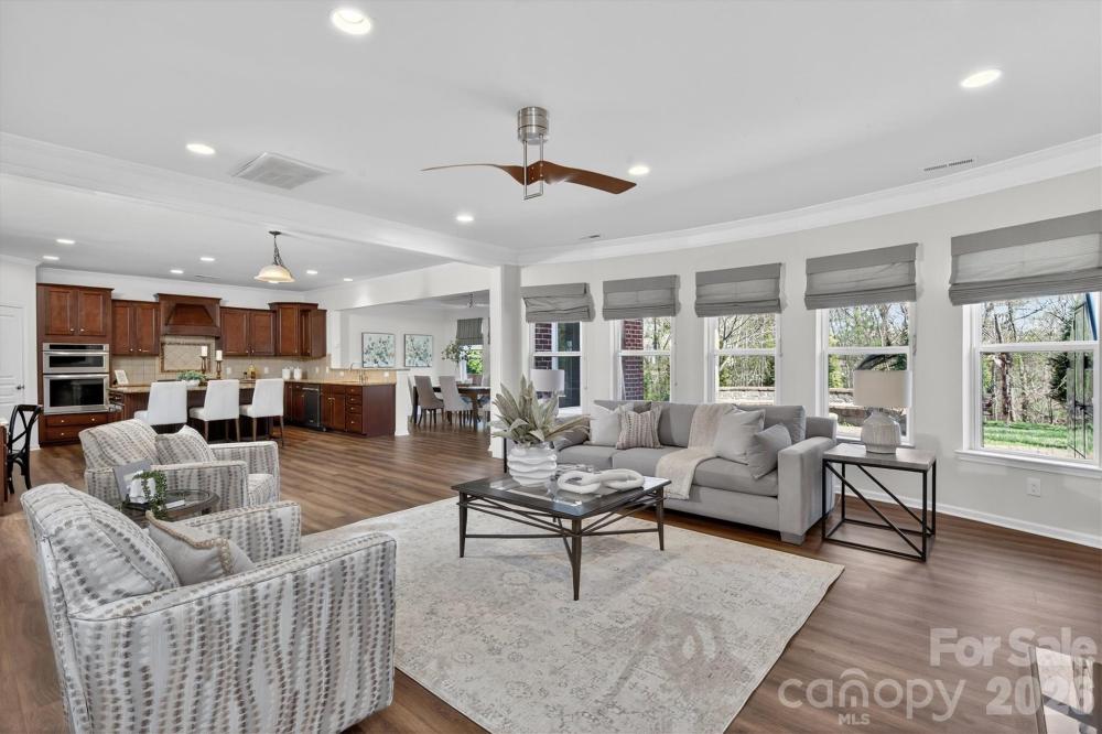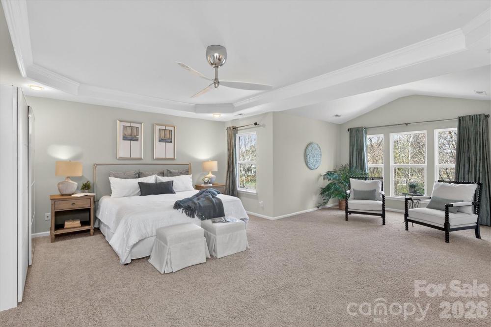 Spacious 5 bedroom, 4 full bath Avalon model with nearly 5,000 square feet located on GREAT lot in popular Ardrey Chase community. Full guest suite on main level plus designated home office with french doors. Gourmet kitchen with large island open to beautiful sunny great room. Large primary suite up, with spacious primary bath and expansive walk in closet. 3 additional bedrooms up, plus huge bonus room. Finished 3rd floor consists of theatre room with bar, plus extra storage space. Outside features a flat yard with mature privacy landscaping, built in stone fire pit with seating, and a pergola for year round entertainment! All new flooring on main floor! Zoned for Ardrey Kell High, and conveniently located near popular town centers such as Blakeney and Ballantyne!