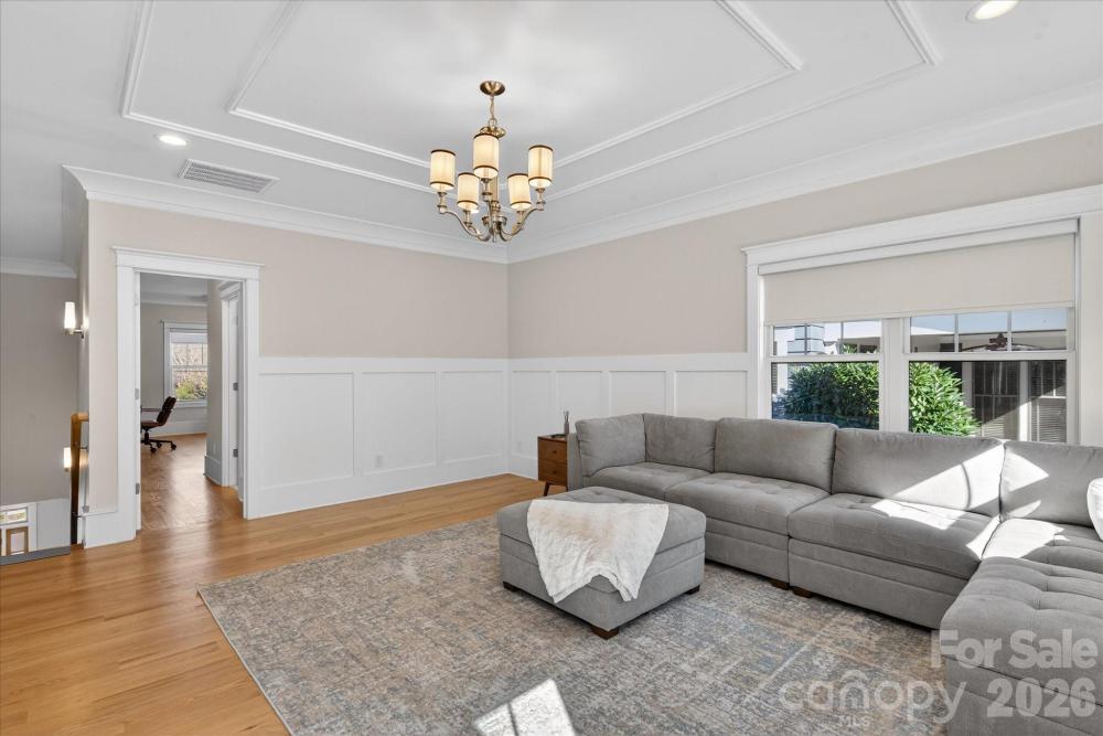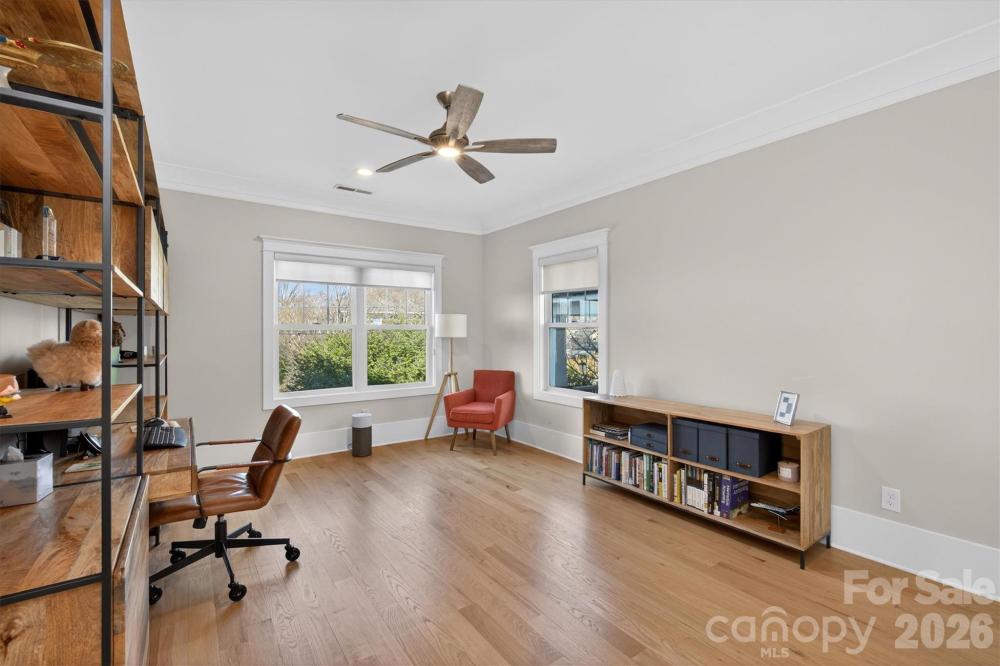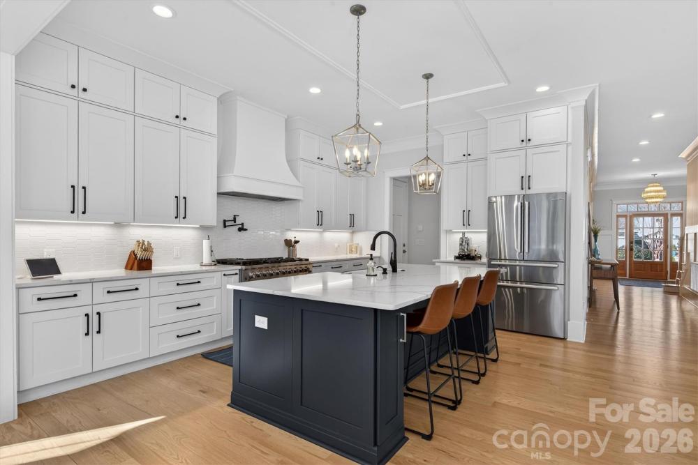Lovely 2022 modern custom home in the heart of Cotswold. Through the heavy wood and glass front door, you are greeted by a wide foyer that immediately showcases the spaciousness, natural brightness, and uncompromising quality of this custom-built high end home. Beautiful site-finished hardwood floors flow seamlessly through every room. Enjoy the modern tech convenience of motorized shades whilst upgraded modern lighting fixtures elevate every space. The kitchen features an over size quartzite island, high-end appliances, walk-in pantry with the added bonus of a 48" range with 8 burners. The main level features a great room, a private executive office, a formal dining room, and a sought-after guest suite. A functional mudroom keeps the home organized. The upper level houses four additional bedrooms, including a large primary suite with two generous walk-in closets. Three additional full bathrooms and a large laundry room with a utility sink to ensure convenience for all. The bonus space has a flexible loft area providing the perfect spot for a media room, play area, or secondary lounge. This is prime Charlotte location situated in the sought-after Cotswold area, with unbeatable proximity to the best the city has to offer; 5 Minutes to Cotswold shopping and dining, 10 Minutes to uptown or the luxury of SouthPark and 25 Minutes to Charlotte Douglas International Airport. Experience the ultimate in curb appeal with this move-in-ready, custom-built masterpiece. Featuring a professional irrigation system and exquisite finishes, this home offers a rare opportunity to own a premier residence in one of Charlotte’s most prestigious neighborhoods.