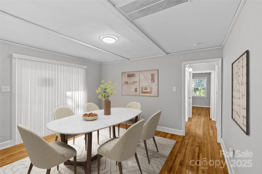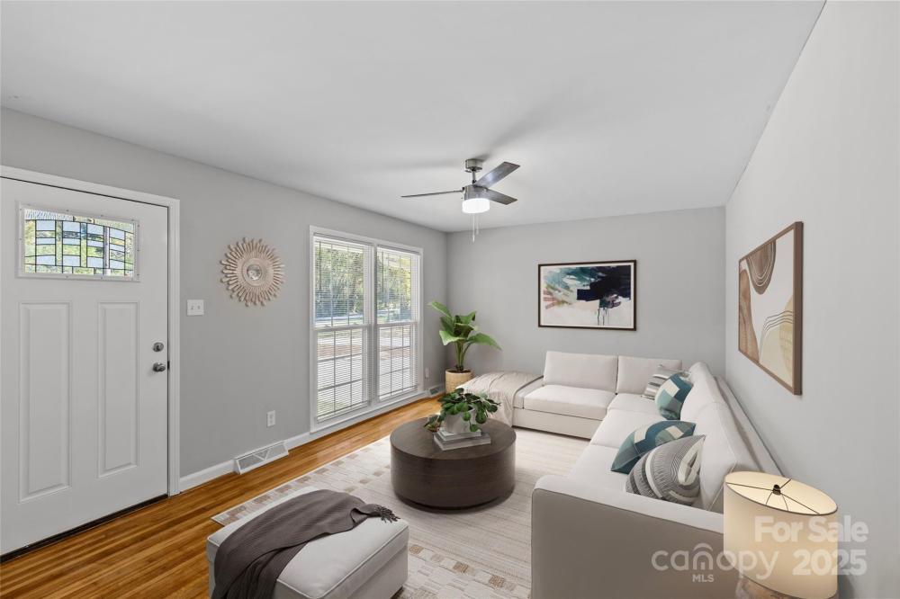 Welcome to this beautifully refreshed ranch home offering the perfect balance of modern comfort and quiet charm. Conveniently located just minutes from I-485, this property features an inviting layout with beautiful hardwood flooring, contemporary finishes, and abundant natural light throughout. The kitchen boasts nice cabinets, a clean tile backsplash, and generous counter space, creating the ideal space for cooking and entertaining. Enjoy your morning coffee or evening gatherings on the spacious deck overlooking a private, wooded backyard that provides a true sense of retreat. With thoughtful upgrades, timeless style, and an unbeatable location, this move-in-ready home is one you don’t want to miss!