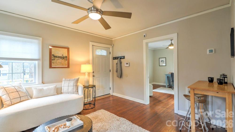 Say hello to this cute-as-can-be cottage in booming Enderly Park. 3224 Rogers Street is filled with character and curb appeal, starting with its charming rocking chair front porch. Inside, the home is nicely renovated, anchored by the well-appointed kitchen with gray cabinetry, an above-fridge wine rack, quartz countertops, and stainless-steel appliances. It opens to the living room with designer tile on the original fireplace (non-functioning). There are two bedrooms, one set as the ideal home office. The bathroom is also updated with a subway-tile shower, pedestal sink, and stylish tile flooring. You’ll love the refinished original hardwoods throughout, and the peace of mind of a 2024 roof and 2025 heat/air. Laundry is located off the kitchen and offers additional storage. Relax on the graveled back patio, the perfect place for a fire pit, or plant a garden in the sun-filled backyard. Convenient location with easy access to all the development on Charlotte's West Side. Welcome home!