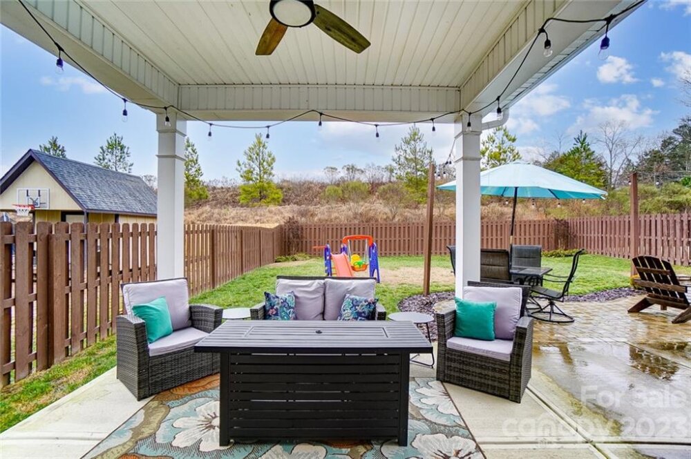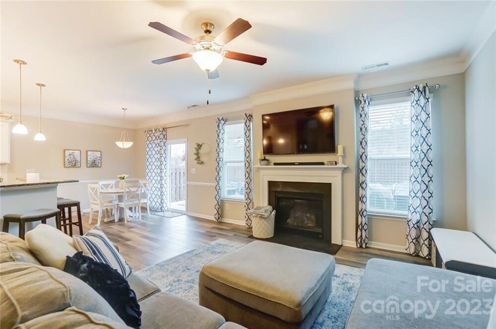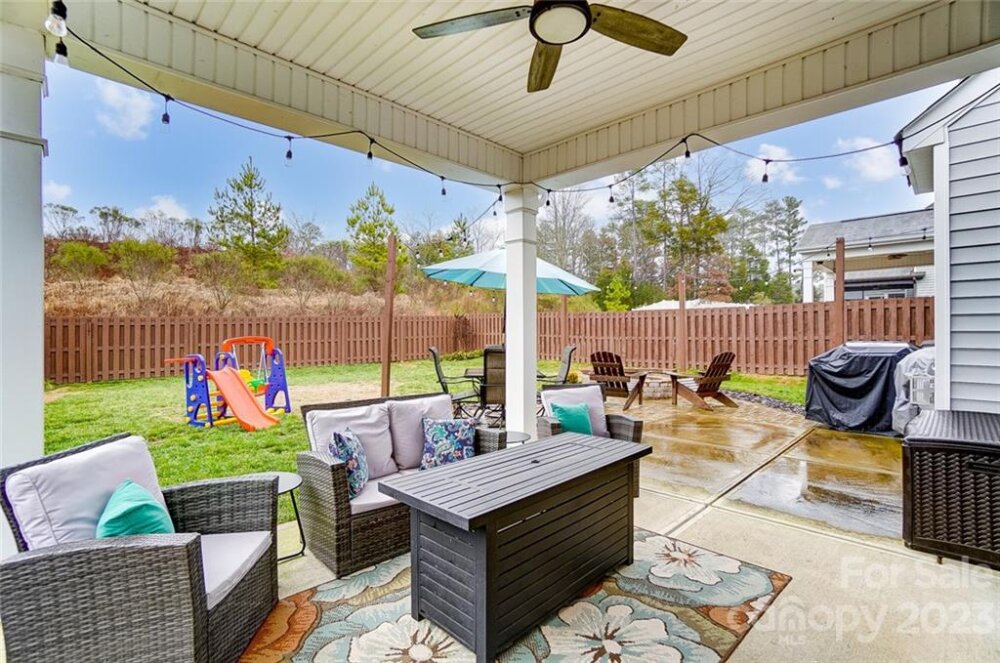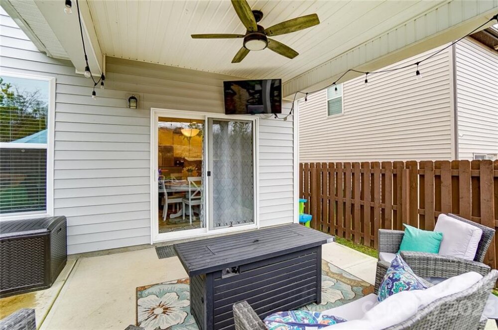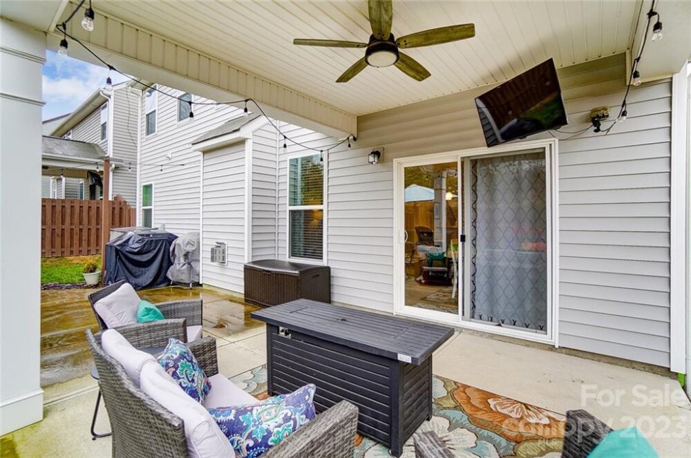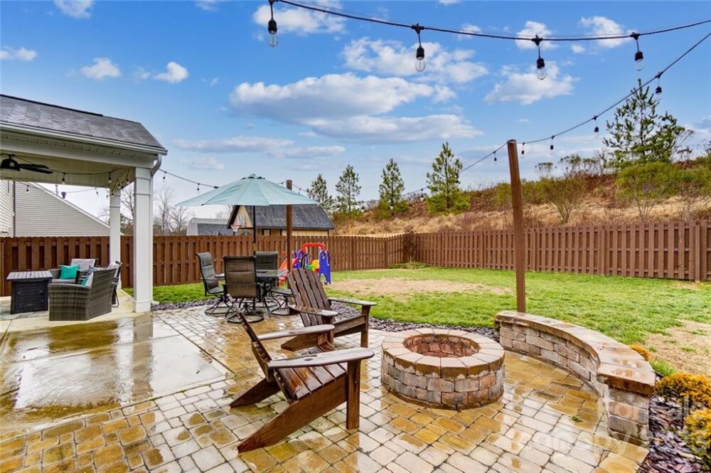 This one is a must see!! Great location! Easy access to Whitewater Center amenities & interstates 485/85! Covered rocking chair front porch. Kitchen features stainless steel appliances, gas cooktop, sit-at bar seating, granite countertops & is open to living & breakfast area with easy access to the covered rear porch offering an extended patio adjoining a paver sitting /fire pit feature which is great for entertaining family & friends! Also, on main floor is a bedroom/office, full bath & dining room. Upstairs you will find the primary bedroom with trey ceiling, oversized bath with garden tub & separate walk-in tiled shower. Two additional bedrooms, 2nd full bath, as well as, a bonus room/loft. Backyard offers tons of privacy and backs up to a natural area and it's fully fenced making it great for kids and pets to play! This is a move in ready home and nicer than new with yard/grass already established, blinds installed, additional built in storage in the garage has also been added!