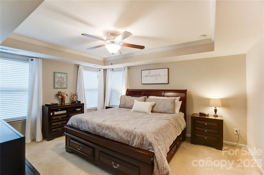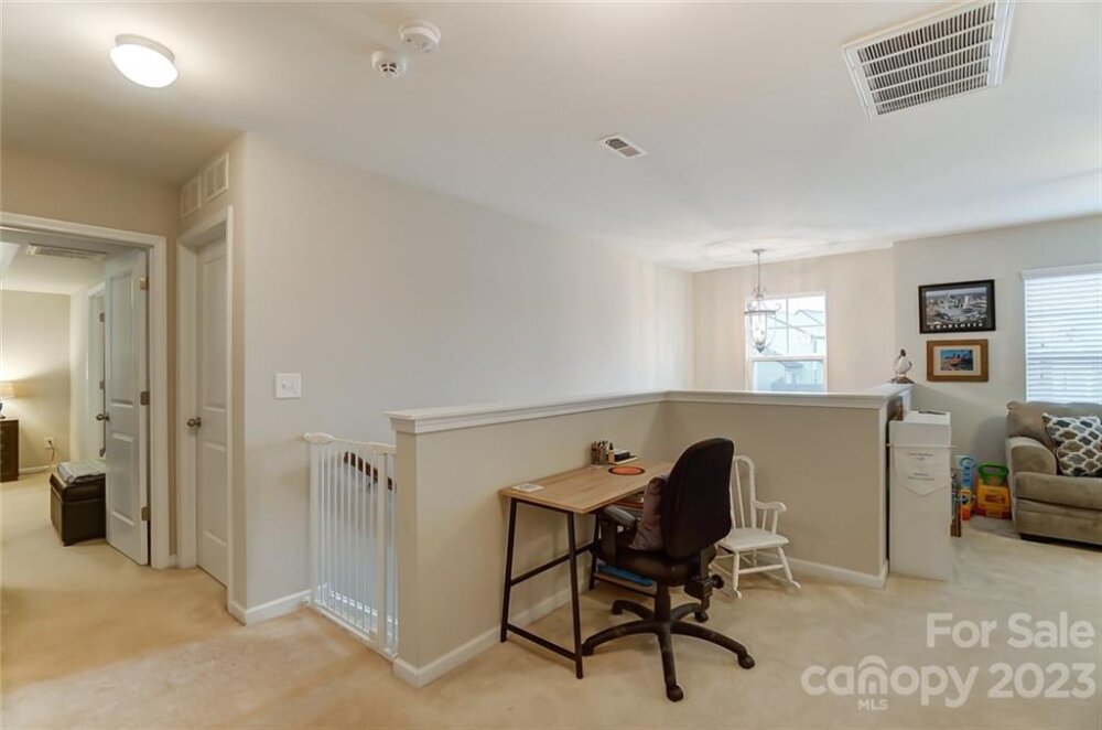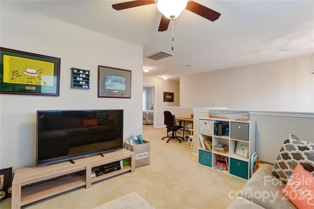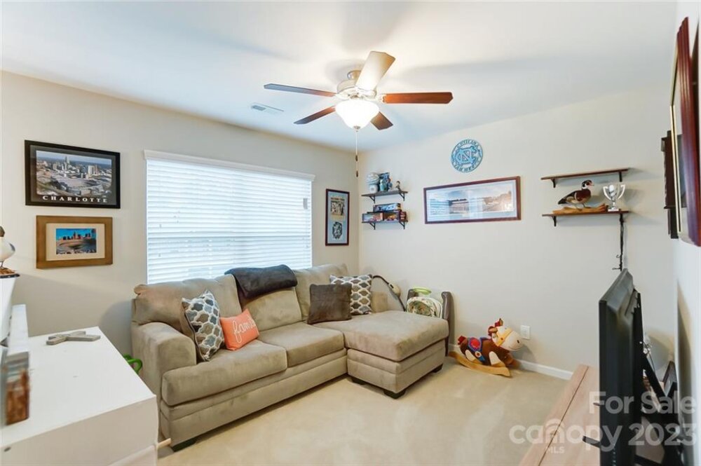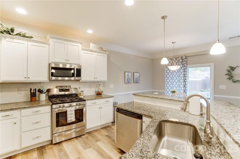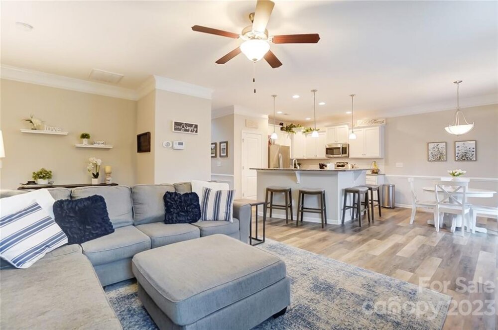 This one is a must see!! Great location! Easy access to Whitewater Center amenities & interstates 485/85! Covered rocking chair front porch. Kitchen features stainless steel appliances, gas cooktop, sit-at bar seating, granite countertops & is open to living & breakfast area with easy access to the covered rear porch offering an extended patio adjoining a paver sitting /fire pit feature which is great for entertaining family & friends! Also, on main floor is a bedroom/office, full bath & dining room. Upstairs you will find the primary bedroom with trey ceiling, oversized bath with garden tub & separate walk-in tiled shower. Two additional bedrooms, 2nd full bath, as well as, a bonus room/loft. Backyard offers tons of privacy and backs up to a natural area and it's fully fenced making it great for kids and pets to play! This is a move in ready home and nicer than new with yard/grass already established, blinds installed, additional built in storage in the garage has also been added!