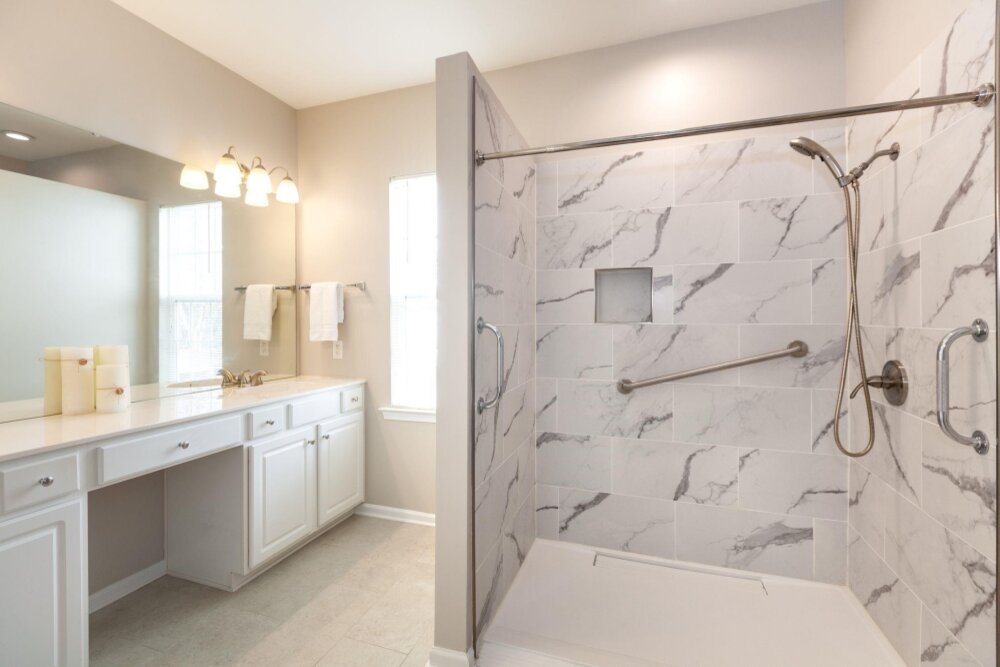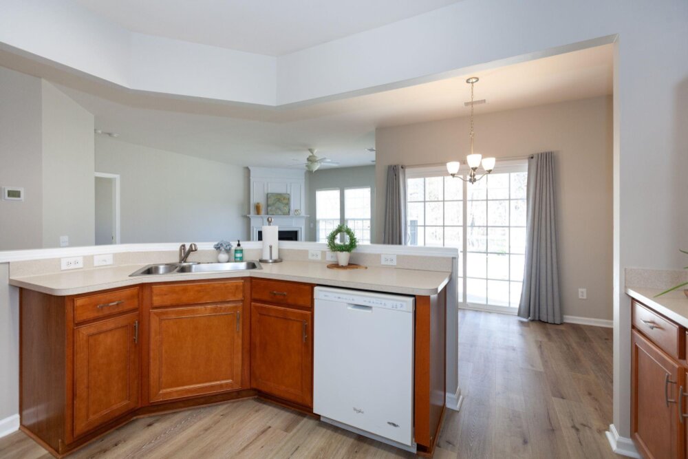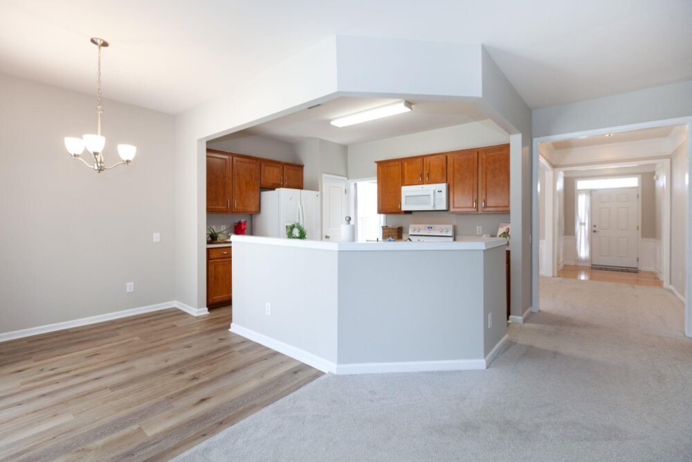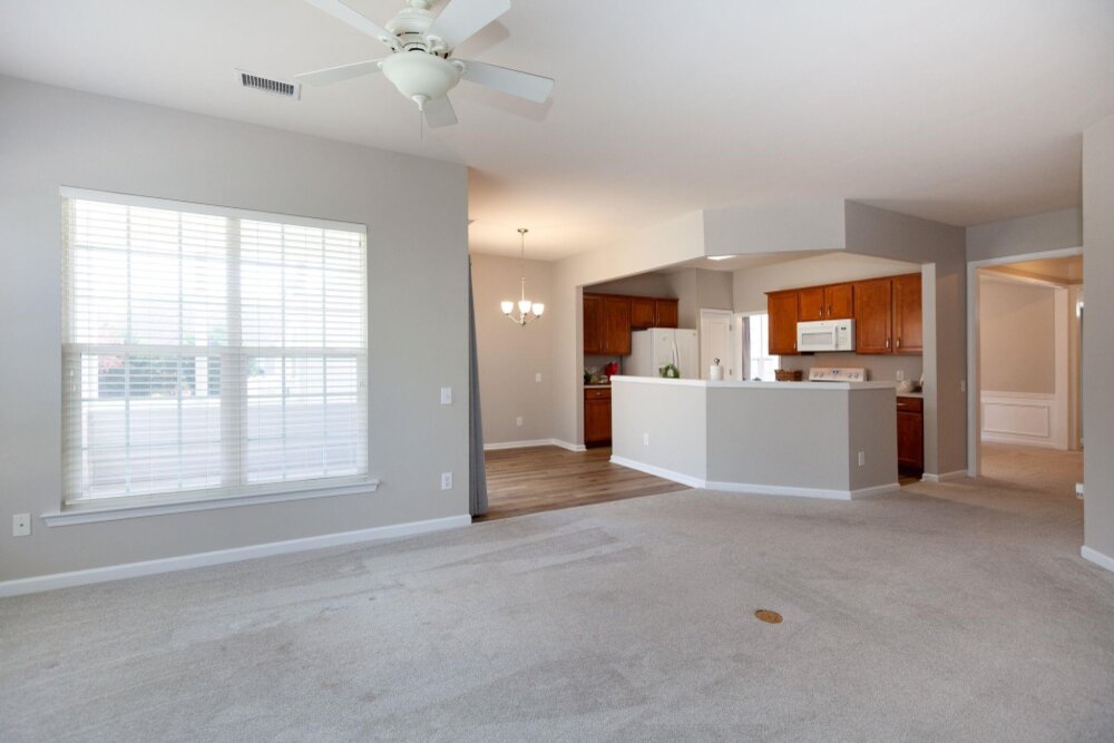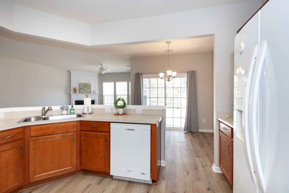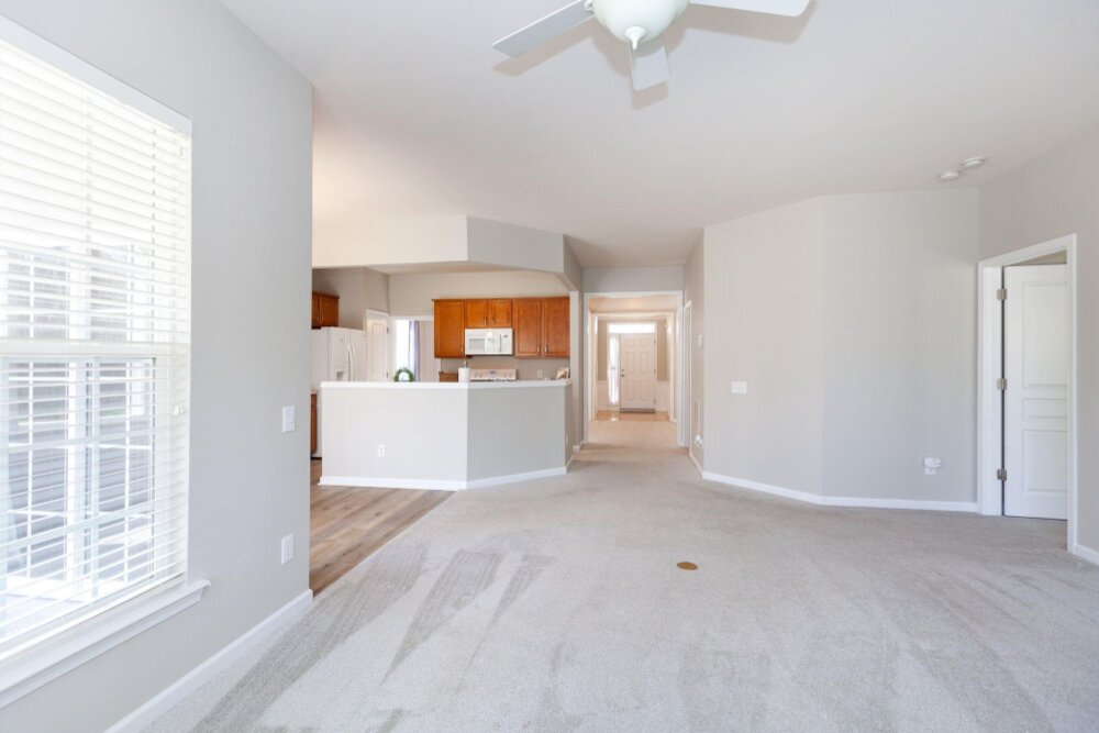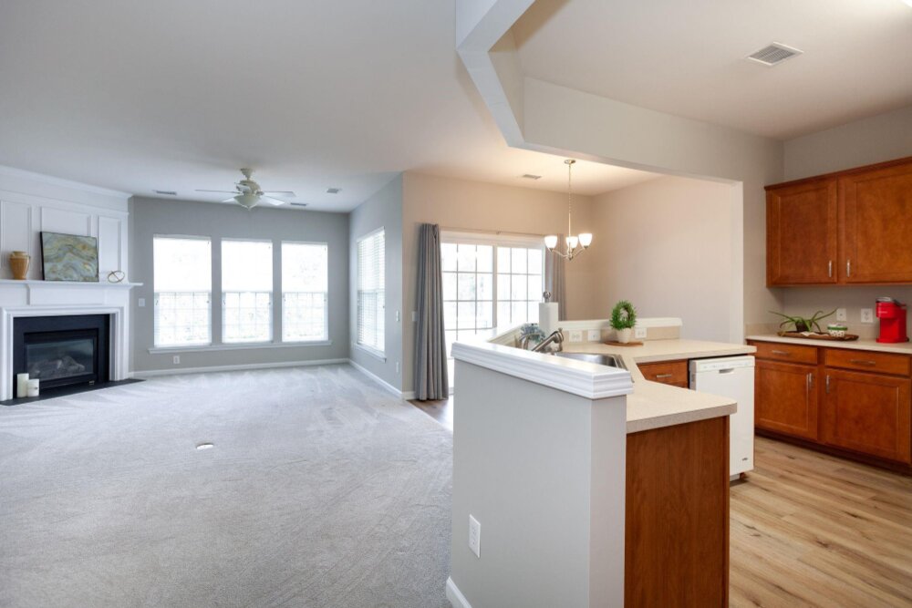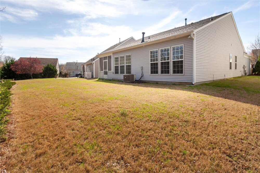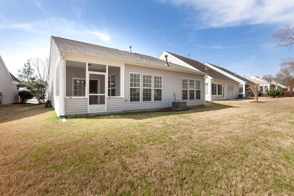 Meticulously maintained 3 bed/2 bath ranch in sought after Auburn Place. Open floorplan flows with ease and boasts tons of natural light. Primary suite has a fantastic walk in closet, tray ceiling, large remodeled shower and double sinks. Screen Porch is a perfect place to drink your morning coffee while enjoying your private backyard. Home offers fresh neutral paint throughout, new carpet & flooring, new light fixtures as well as hinges and knobs. Other Improvements include AC 2018, flooring in Primary and secondary bathroom 2019, Roof 2020,Exterior paint trim 2020, Primary accessible shower and sink fixtures 2020, full interior paint 2023 Conveniently located to Blakeney and Stonecrest and all of the dining and shopping that they have to offer. HOA covers partial yard maintenance