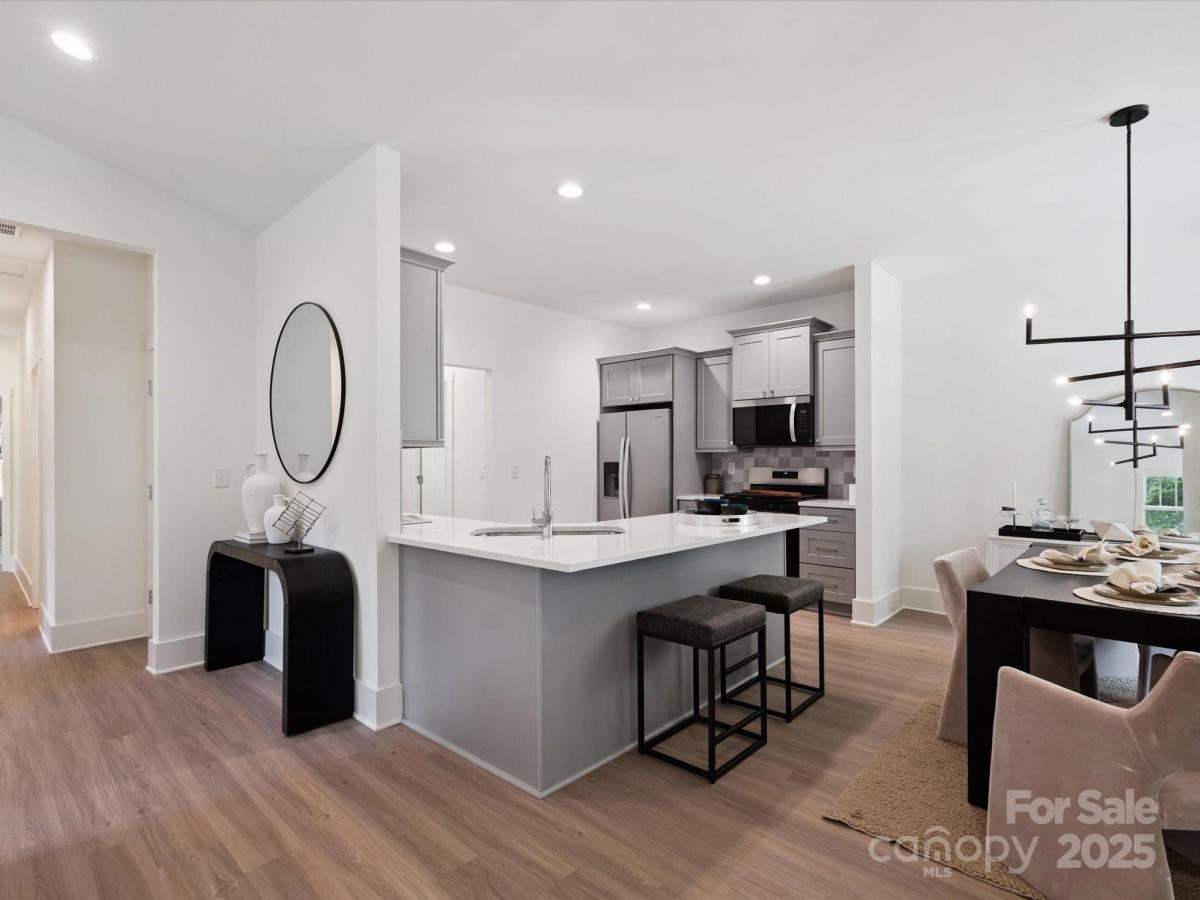 Stunning semi-custom new construction ranch home, upon arrival you will be greeted by the large rocking chair front porch overlooking your fully landscaped gorgeous front yard complete with trees, shrubs, and sod. Once inside you will embrace the large open concept living area with vaulted ceiling, custom trim, amazing chefs kitchen with large peninsula perfect for entertaining guests and family. Stunning quartz countertops, stainless steel appliances, custom tile backsplash, craftsman style cabinets with soft close doors/drawers. Throughout the home, you will find luxury vinyl plank flooring, each of the secondary bedrooms are generous in size and secondary bathrooms all have designer lighting and custom tile flooring and walls. The master suite features a large walk in closet, full bath with dual vanities and large walk in shower. The large fenced in backyard is private & perfect for kids, pets, & summer cookouts. Truly a custom style home that’s affordable. 0% down and closing costs paid by first national bank available for qualified buyers. Seller financing could be an option as well.