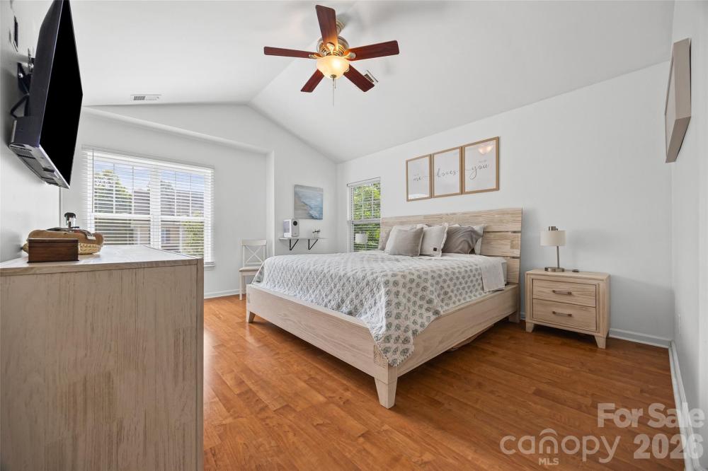 Bright and spacious, this Riverbend home offers an open layout ideal for entertaining and everyday living. Enjoy a large living room that flows into the upgraded kitchen with a generous peninsula and dining area. Fresh, neutral paint throughout enhances the light-filled space. Upstairs, the oversized primary suite features two walk-in closets; two additional bedrooms, another full bathroom and a convenient laundry room—washer and dryer included. Step outside to a flat, fenced backyard with a deck, pergola, fire pit, and young fruit trees—perfect for gatherings. The fence was installed 2 years ago. The finished 2-car garage includes a foldable built-in workbench and numerous supplemental lights, adding function and storage. Riverbend amenities include a pool with slide, volleyball court, playground, sidewalks, and streetlights. All this just minutes from the Whitewater Center, Mountain Island Lake, I-485 and exciting Riverbend Village shopping and dining.