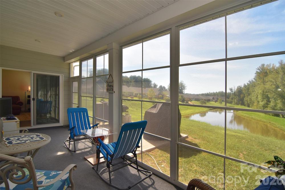 Welcome home to The Enclave at Holcomb Woods! A 55+ community that combines amenities, luxury and low-maintenace living at its finest. This wonderfully upgraded 2-bedroom, 2-bath home has been meticulously cared for and intentionally upgraded. From the moment you walk in you will feel the thoughtful details. Engineered hardwood floors throughout the common areas and flex space, plantation shutters, cozy fireplace, a gourmet chefs kitchen with daul ovens, quartz countertops, a walk-in pantry and upgraded appliances. The spacious primary suite is a true retreat, offering an oversized Roman shower with dual shower heads and thoughtful designer touches. Plus a versatile flex space perfect for a home office, hobby room, or guest area. Even the garage has been finished to align with the complete feel of the interior of the home. Step outside and enjoy year-round relaxation on the enclosed porch with a floor-to-ceiling Eze-Breeze window system, all overlooking a serene pond with a long wooded backdrop. Located just minutes from I-485, Farmington, shopping, dining, the new Harrisburg Urgent Care, and less than 30 minutes to Charlotte Douglas Airport . . . this home offers both luxury and convenience.