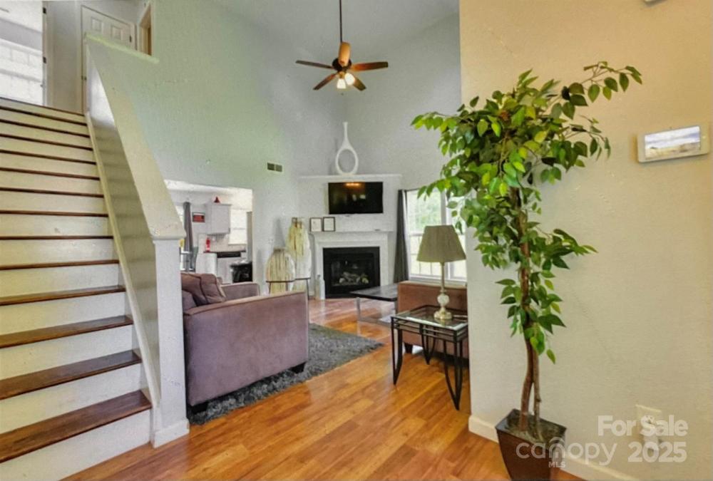Enjoy peaceful mornings on the inviting covered front porch, perfect for sipping coffee or tea. This beautifully maintained 4-bedroom, 2-bathroom home offers a thoughtful layout with the primary suite conveniently located on the main floor, complete with a cozy lounging and reading nook. Step inside to soaring vaulted ceilings and a bright, open living space. The gorgeous kitchen features granite countertops, a stylish tile backsplash, and stainless steel appliances — all included, as is. Upstairs, you'll find three spacious bedrooms, each with ceiling fans for year-round comfort. Both full bathrooms are fully tiled and designed with modern flair. This home also includes a 1-car garage that is fully functional for parking, storage, or can easily be transformed into a man cave, game room, home gym, or creative workspace — the choice is yours. Out back, a patio perfect for entertaining or relaxing, offering a seamless indoor-outdoor lifestyle. Tucked away in a serene cul-de-sac, this home blends comfort, style, and flexibility — ready for you to move in and enjoy.