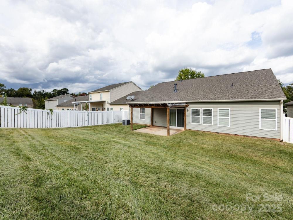 Looking for a 1-story split bedroom plan with lots of space/rooms. This home has 4 bedrooms & 2 full baths. An office w/ glass french doors are perfect when working from home. Formal dining/sitting room is just across the foyer. Open family room w/ gas log fireplace. Spacious kitchen has stainless steel appliances, laminate wood floors, granite counters, island, & counter over-hang for space to add barstools for entertaining. There is also a built-in desk(drop zone) b/t the garage entry & the laundry room. You can relax on your covered front porch or if you desire more privacy then step into the rear vinyl fenced yard w/ awning to shield you from the sun. Large primary suite w/ big walk-in closet, garden tub, sep. shower, & 2 sinks. Two of the secondary bedrooms have a small walk-in closets. Upstairs is a bonus room on one side & an additional flex space on the other side. Roof was replaced in 2023. Leafguard protection has been installed over the gutters. Seller said that Morris Jenkins replaced the A/C unit in 2021. Conveniently located to shopping, dining, & Hwy access. Downtown Charlotte is only 8 miles away. UNC-Charlotte is just 3.5 miles away. Home is energy star certified.
