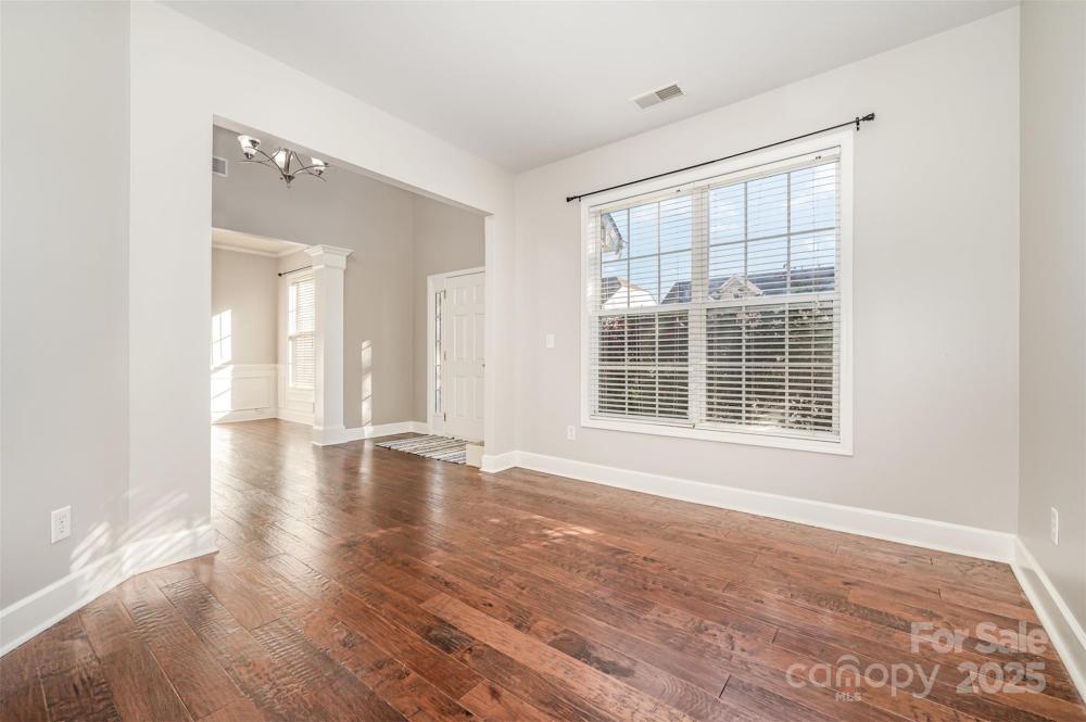 SPECIAL FINANCING/CLOSING COST AVAILABLE WITH PREFERRED LENDER. This beautiful home 4 spacious bedroom, 2.5 bathroom is ready for its new owners! Step inside to a bright, open main level with engineered hardwood flooring and tile throughout, ideal for both everyday living and entertaining. A formal dining room to the right and a formal living room to the left provide elegant spaces for hosting guests. The airy family room with its double-height ceiling flows seamlessly into a spacious kitchen featuring abundant cabinetry, stainless steel appliances, and a large kitchen island that adds a touch of elegance and functionality. A flex room on the main floor offers endless possibilities — it can serve as a home office, playroom, or additional living area to suit your needs. Upstairs, the primary suite and three secondary bedrooms provide comfort and privacy for the whole family, with the laundry room conveniently located on the same level. Enjoy the private backyard, perfect for relaxing, gardening, or entertaining. Located just minutes from I-485, I-85, and UNCC, this home sits in a quiet neighborhood offering low HOA fees and desirable amenities such as an outdoor pool, clubhouse, picnic area, and tennis courts. Schedule your private showing today and make this beautiful home yours!