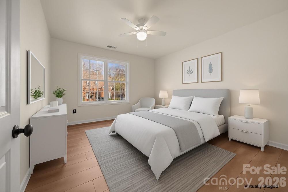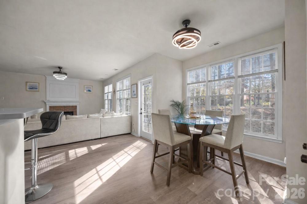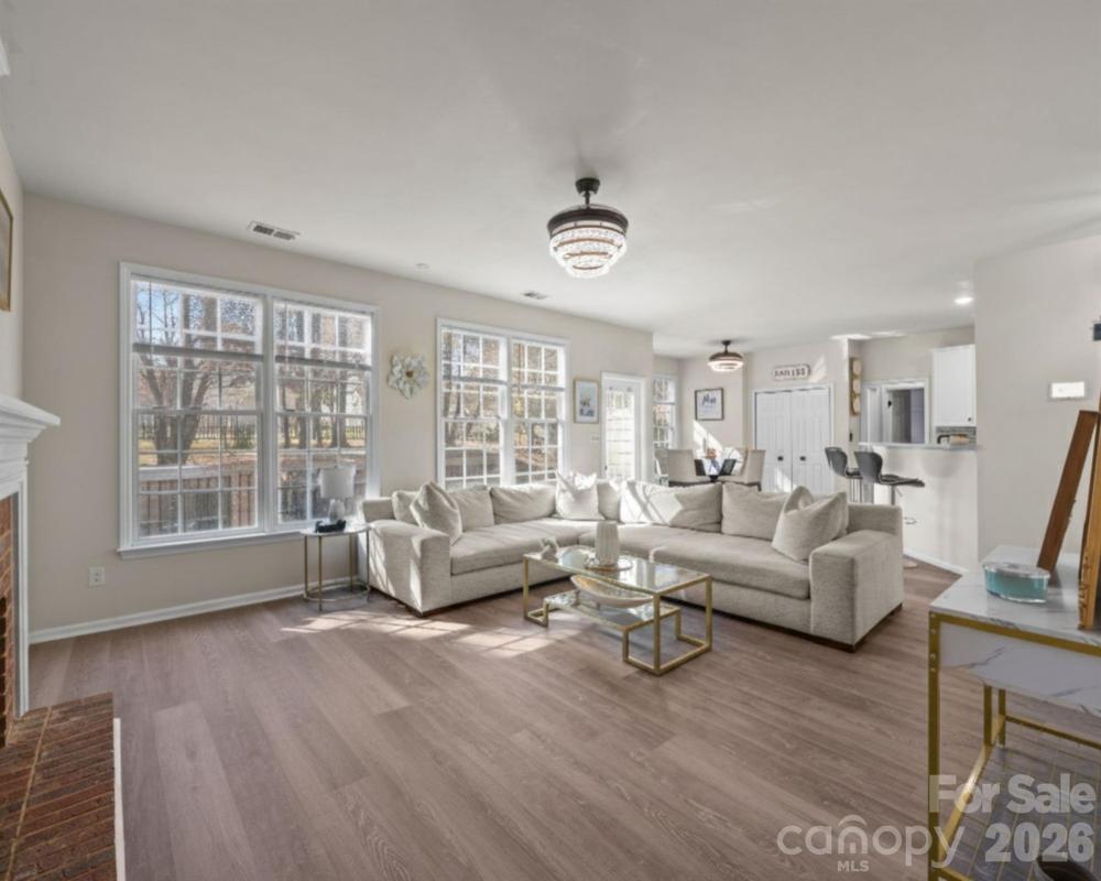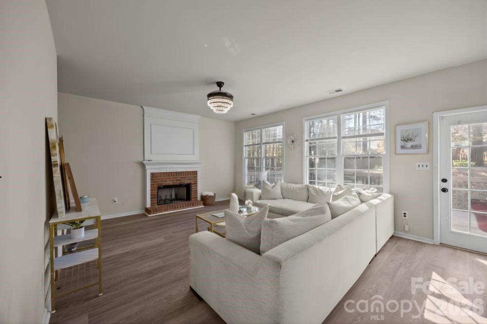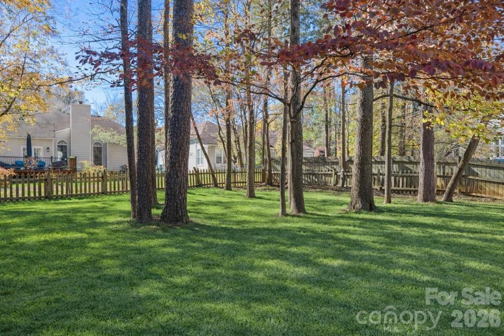 Welcome to Harrington Woods, where this move-in-ready beauty unfolds with an easy, natural flow on a level, treed lot. Inside, a bright living room anchored by a warm fireplace leads to the dining area and an upgraded, chef-inspired kitchen with granite countertops, abundant cabinetry, and new Energy Star® appliances. New LVP flooring adds a fresh, cohesive feel. Work or study in the main-level office and enjoy the convenience of a bedroom and full bath on the main—perfect for guests or multigenerational living. Glass doors open to a deck overlooking the fully fenced backyard, creating effortless indoor–outdoor living. Upstairs, the large, serene primary retreat surprises with a romantic fireplace, a spa-style bath with a double-sink vanity, a garden tub, and a separate shower, plus a generous walk-in closet, with the laundry room nearby for everyday ease. Well-sized secondary bedrooms each offer walk-in closets for excellent storage and flexibility. A two-car attached garage, a wide concrete driveway with ample parking, a security system, and neighborhood sidewalks and walking trails complete the picture. All of this in the University Area—close to Harris Teeter, everyday shopping, and quick connectors to I-85, I-77, and I-485. Schedule your private tour today!