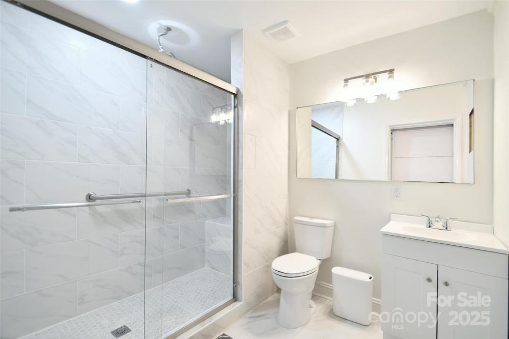Newly renovated full brick, move in ready home with a great yard close to Uptown, NoDa, Plaza Midwood, and South End. Winterfield is an established neighborhood with no HOA, and this is a larger house in the neighborhood that has been beautifully updated! 5 bedrooms, 2000 sqft, and a split level layout would work great as an AirB&B, short term rental, or a family home. Centrally located allowing you to experience all that Charlotte has to offer while living in a great community with a suburban feel near the city. Main/upper levels have beautiful original hardwoods that are in great shape and show the character of the home. Brand new fans, fixtures, and lighting throughout the entire house. Kitchen updated with tile floors and backsplash, quartz countertops, new custom island, and a gourmet sink. Lower level has brand new high quality LVP floors, ceiling fans, and a fantastic bathroom. Brand new windows on the upper level and the entire home has been painted a clean neutral color. All 3 bathrooms in the house have been completely renovated with luxury tile and brand new everything! Bigger flat backyard that's fully fenced, has a freshly stained deck, and a 2 car carport within the brand new wood gate. Brand new concrete driveway. This home was on the market with tenants in place in 2025, and during the renovation, It is now ready showings with a new price tag and and improved features! Roof was replaced in 2020 and the HVAC system was replaced in 2017. sellers, we would love an offer!