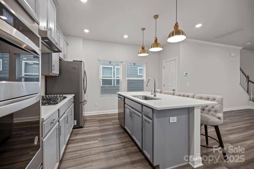 Located in Steele Creek, this nearly new, energy-efficient Meritage home offers a functional open-concept layout with an attached rear-entry garage. The main level features a bright living area that flows into the kitchen and dining space, creating an easy setup for everyday living and entertaining. The kitchen is finished with stone-tone cabinetry, ice-white quartz countertops, and EVP flooring. Upstairs, a flexible loft provides additional living space, while the primary suite offers a comfortable retreat with modern finishes and neutral carpeting. Set within the Shopton Point community, residents enjoy convenient access to Lake Wylie shopping, dining, and outdoor recreation, along with quick commutes to Uptown, Ballantyne, Fort Mill, I-485, I-85, and Charlotte Premium Outlets.