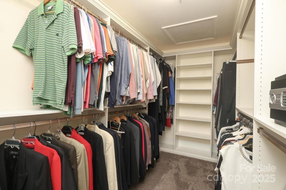 Welcome to this elegantly appointed all-brick residence in the highly desirable Colvard Park neighborhood, offering four bedrooms, two and a half baths, and main-floor living in a serene, park-like setting. Enter through a gracious two-story foyer, leading to the living and dining rooms with new hardwood floors and French doors. The kitchen showcases an abundance of storage, generous counter space, walk-in pantry, and thoughtful updates including new quartz countertops, refreshed cabinetry with updated hardware, new sink and faucet, induction range, and stylish tile backsplash. The adjacent breakfast room with breakfast bar opens to a newly constructed two-level deck, complete with convenient pet ramp. The main-floor primary suite features vaulted ceilings and a custom California Closets walk-in closet. The primary bath has been updated with new quartz countertops, separate tub and shower, and bidet. Additional main-floor living spaces include a great room with vaulted ceiling, gas fireplace, and French doors opening to the outdoor living area. Comprehensive updates throughout include new interior paint, lighting fixtures, ceiling fans, window treatments, plantation shutters, tankless water heater, whole-house water filtration system, walk-in attic access, new vapor barrier in the crawlspace, and a convenient dog washing station in the two-car garage. The neighborhood itself offers exceptional appeal with direct access to Clark's Greenway just steps away, a community green space, and gathering gazebo. Location provides easy access to I-85, I-485, I-77, and Charlotte's Innovation Park, with excellent shopping and dining nearby—Concord Mills (10 minutes) and Trader Joe's (5 minutes).