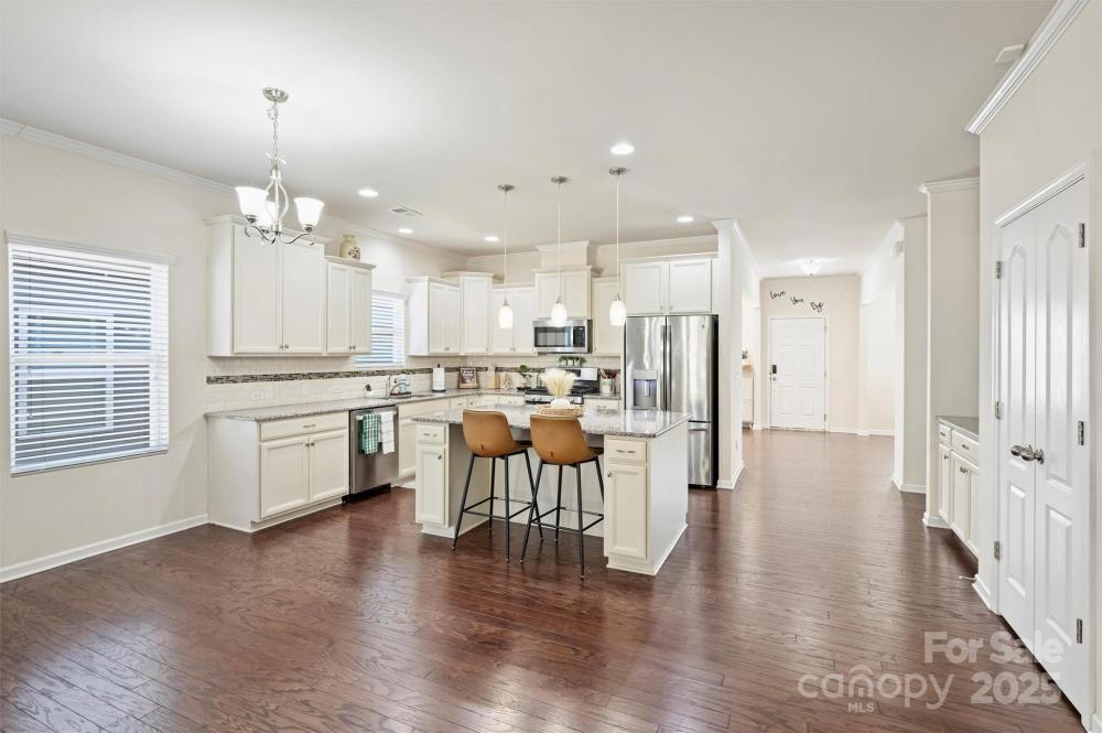 Welcome home to this beautifully maintained 3-bedroom, 2-bath residence in the desirable Clarabella subdivision in Steele Creek. Enjoy the ease of single-level living with an open, spacious family room that flows seamlessly into the modern kitchen, featuring stainless steel appliances and a large island—perfect for gatherings, meals, and entertaining. The primary suite offers a private ensuite bath with a soaking tub, separate shower, and generous size closet. Outside you will find a backyard designed for relaxation and entertaining. Convenient location, comfortable layout, and move-in ready. Don’t miss this one!