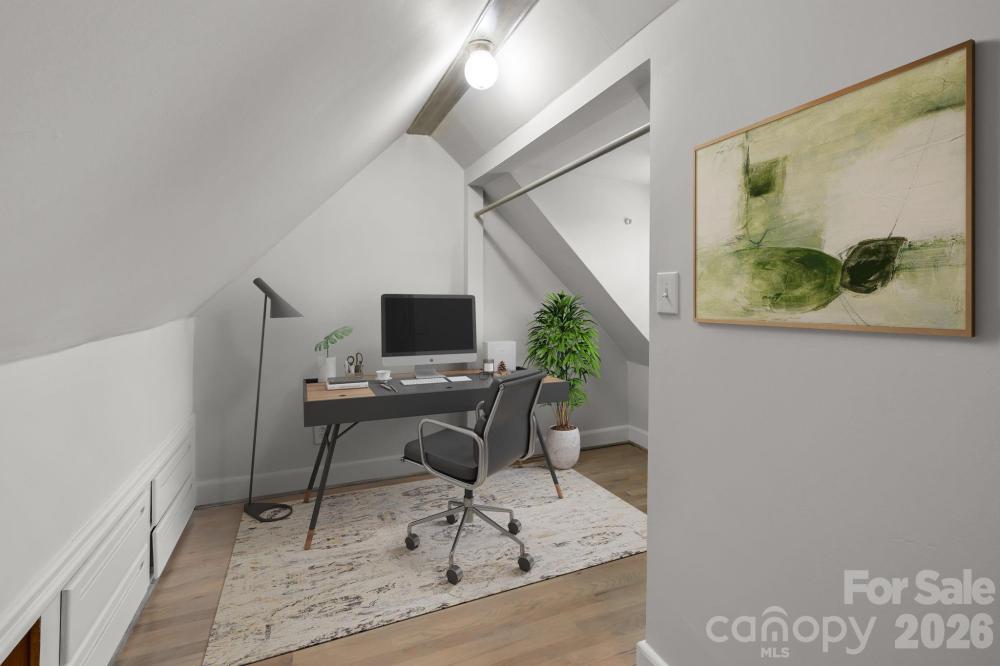 Move-in ready and full of charm, located just minutes from Uptown—with no HOA. A large, level, fenced backyard with a deck offers privacy and the perfect space to relax or entertain. Natural light fills the interior, highlighted by wood and LVP flooring throughout. The living room features a cozy fireplace, ideal for quiet nights in or hosting friends. The kitchen delivers with ample cabinetry and generous counter space. The main level includes two bedrooms, an updated bathroom, living room, kitchen, mudroom, and laundry room. Upstairs, a flexible space serves as a home office, bonus room, additional bedroom, or private retreat. Roof replaced 2024, HVAC replaced 2023. A rare opportunity to own in one of Charlotte’s most desirable neighborhoods, Commonwealth Park. Schedule your showing today!