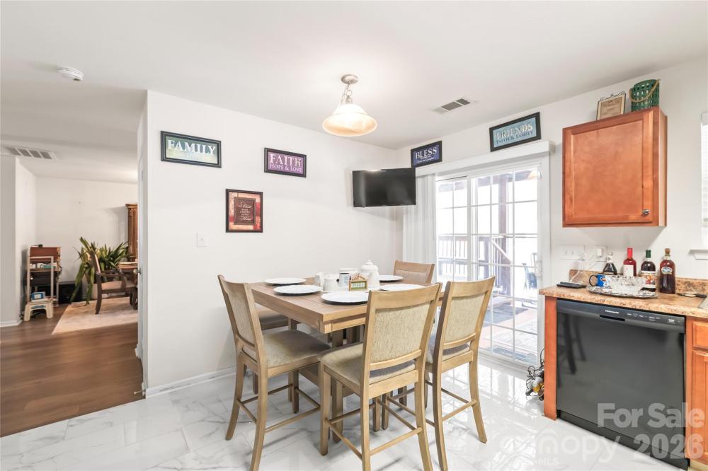 Beautiful 4BR/2.5BA two-story home in desirable Potters Glen featuring spacious living areas and a large kitchen with birch cabinetry, black appliances, granite countertops, and marble flooring. Vaulted primary suite offers a glamour bath with a garden tub, separate shower, and custom walk-in closet system. All bedrooms include organized closets. The hall bath features a double vanity. Enjoy outdoor living with a screened-in finished deck/patio with ceiling fans and electricity, plus a gazebo with remote lighting, storage shed, and cemented sidewalk leading to the rear entertaining area. 2-car garage and exterior security cameras. 2025 UPDATES: NEW GARAGE DOOR, SCREEN DOOR, CENTRAL AIR (under warranty), HEATER (under warranty), and HOT WATER TANK (under warranty). Convenient to I-485, I-77, I-85, dining, shopping, and Northlake Mall. Schedule your tour today!