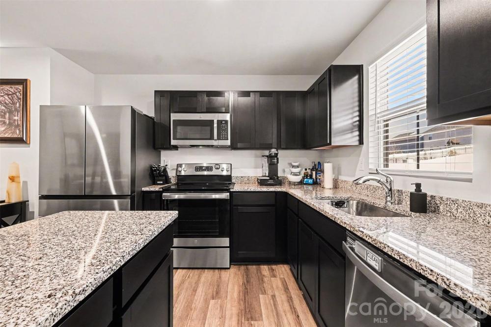 Step inside and feel instantly at home in this inviting two-story residence designed for both comfort and connection. As you enter through the front door, you’re welcomed by a bright, open main level where natural light and warm, neutral finishes set the tone. The spacious living room offers an ideal place to relax or gather, flowing effortlessly into the heart of the home—the kitchen. Here you’ll find granite countertops, rich dark cabinetry, stainless steel appliances, and a generous island, making the space perfect for cooking, entertaining, or casual meals. A nearby dining area adds flexibility for everyday living or hosting guests. Continuing through the main floor, the layout opens beautifully to the outdoors. Step out back to an extra-large patio with a pergola, an entertainer’s dream and a peaceful retreat alike. The fully fenced yard provides privacy and space to enjoy, complete with a fire pit that creates the perfect setting for cozy evenings and memorable gatherings. Upstairs, all three bedrooms are thoughtfully placed for privacy and convenience. The primary suite offers a true retreat with ample space and a private ensuite bath, while the additional bedrooms are well-sized and share a full bathroom—ideal for guests, family members, or a home office. With its functional layout, stylish finishes, and exceptional outdoor living space, this home offers the perfect blend of everyday comfort and special touches that make it truly stand out.