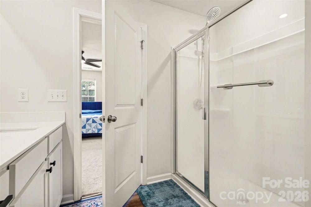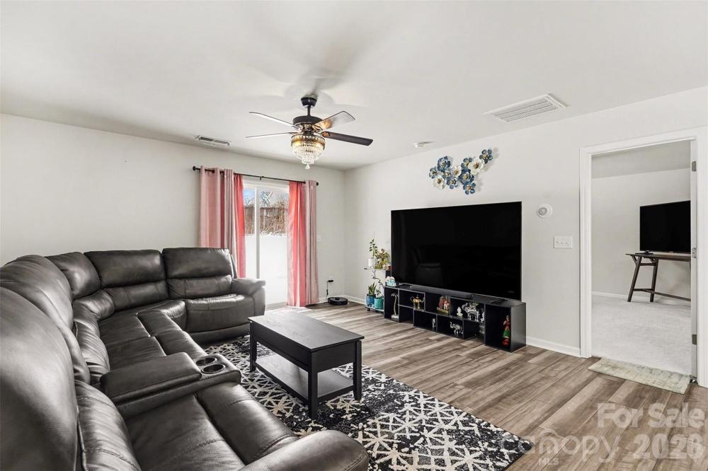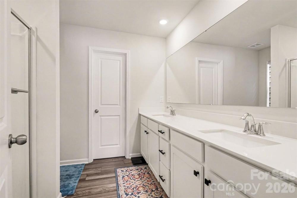 Built in 2024 and located in The Retreat at Cameron Commons, this move-in-ready home offers the perfect blend of modern finishes, open-concept living, and a hard-to-find layout with the primary suite on the main level. Inside, you’ll love the bright, airy feel created by an open floorplan, wide vinyl plank flooring, and recessed lighting throughout the main living spaces. The kitchen is a true centerpiece with a large island, granite countertops, crisp white cabinetry, a pantry, and stainless steel appliances including a gas range, microwave, dishwasher, disposal, and refrigerator with ice maker. The kitchen flows seamlessly into the dining area and living room, making it ideal for entertaining or everyday living. The main-level primary suite provides comfort and privacy with a spacious walk-in closet and an ensuite bath featuring dual vanities and a walk-in shower. Also on the main level, you’ll find a convenient laundry room and a functional half bath. Upstairs offers plenty of room to spread out with four additional bedrooms, a full bath with double sinks, and a generous bonus room that can easily serve as a media room, playroom, or home office. Outside, enjoy a level lot and a backyard ready for relaxing, grilling, or play. Additional highlights include a two-car attached garage, architectural shingle roof, vinyl exterior, city water and sewer, and central air with ceiling fans for year-round comfort.
