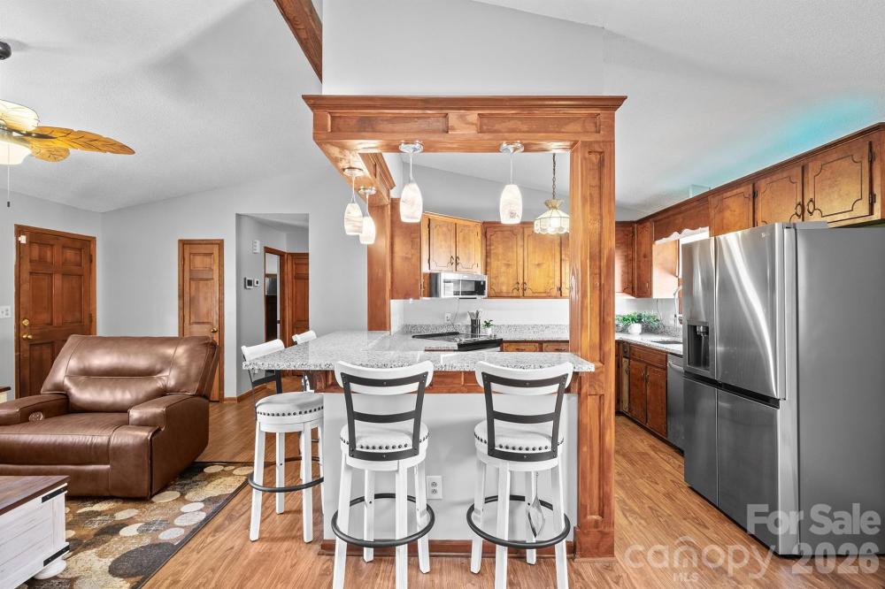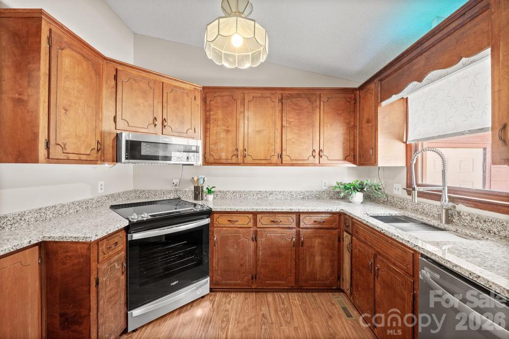 Welcome to this classic one story, 2 bedroom, 2 full bathroom single-family home with a bright, open layout designed for everyday living and entertaining. The spacious living room has great natural light, a statement fireplace, and a comfortable flow to the kitchen, with brand new stainless steel appliances, and ample counter space. This home has a generous sized, primary ensuite bedroom/bathroom for privacy. The additional bedroom is located next to the second full bathroom. These bedrooms and the laundry closet are tucked away in their own hallway area. Step outside to your luxury outdoor experience that includes a deck, paved layered spaces with a firepit area, perfect for entertaining or enjoying the wooded backyard. Also has an outdoor storage area! 2022 roof, 2021 HVAC, 2022 water heater. The crawl spaces has a dry pro system and sump pump. This inviting residence blends comfort with classic charm, offering a move-in-ready opportunity just minutes from Uptown, South End, and the booming West Charlotte redevelopment, in one of Charlotte’s fastest-growing communities. Quick access to Uptown Charlotte, I-77, and I-85. Close to the Stewart Creek Greenway, parks, breweries, and new retail. Situated in a neighborhood experiencing significant investment and revitalization. Whether you're a first-time buyer, investor, or anyone seeking a well-located home near the heart of Charlotte, 2114 Wilson Ave delivers value, convenience.