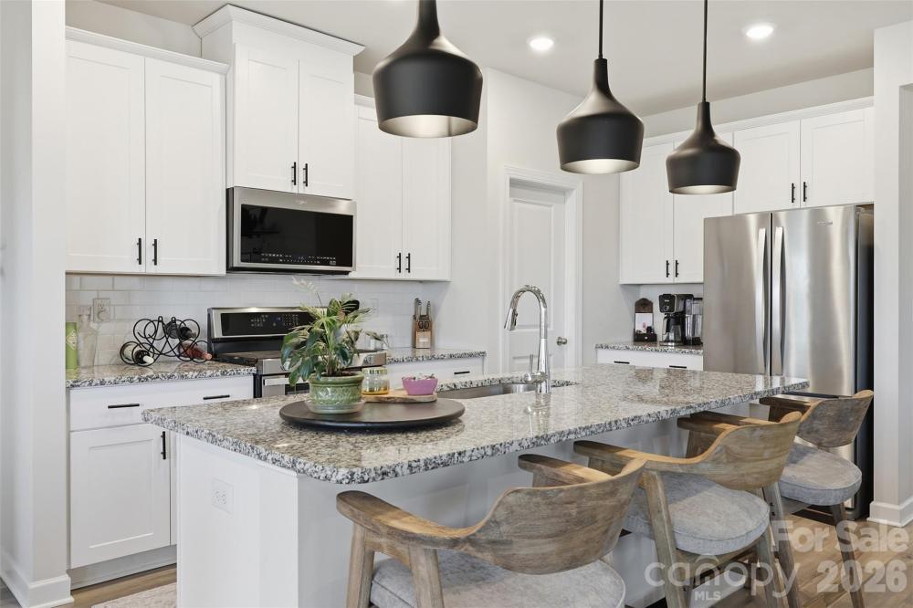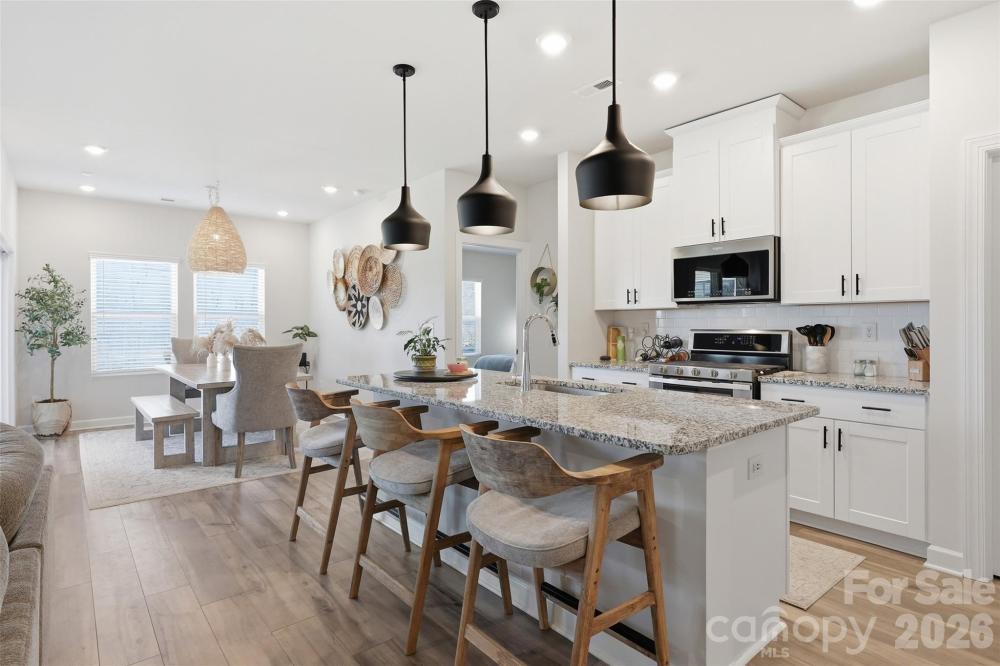 Professionally decorated and thoughtfully designed, this beautiful 3 bedroom/2 bath ranch is nestled within the highly sought-after and amenity-rich Solena at The Vineyards community. The open-concept floor plan is centered around a true chef’s kitchen featuring linen cabinetry, a large center island, granite countertops and stainless steel appliances, ideal for both everyday living and effortless entertaining. The kitchen flows seamlessly into the dining area and inviting living room, with direct access to a covered rear porch overlooking the fully fenced backyard. The primary suite offers a peaceful retreat, complete with a spa-inspired en-suite showcasing a spacious stand-alone shower, dual-sink vanity and a custom walk-in closet. Two generously sized secondary bedrooms share a well-appointed full bath, providing comfort and flexibility. Residents enjoy access to exceptional community amenities, including a resort-style pool, fitness center, tennis courts, playground, walking trails and scenic waterfront living along Lake Wylie!