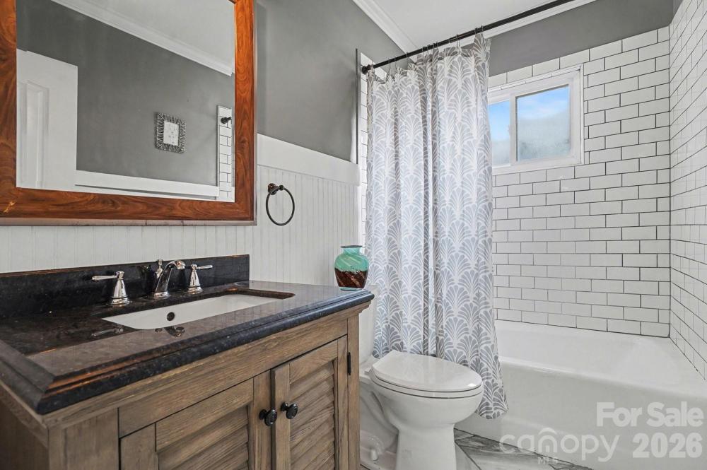 Completely renovated* in 2015, this classic, larger, 1960 brick ranch in the beautiful Grove Park neighborhood is special! This 4-bedroom home has a modern flair and offers 1800+ square footage and an open-floor plan perfect for living and entertaining. Beautiful wood floors run throughout the kitchen and main living areas, as well as the primary bedroom, which sports a huge spa-like bath with both stand-alone tub and walk-in shower. Solid wood doors and crown molding throughout the home. Kitchen and baths have been renovated and show beautifully; additional three bedrooms are located away from the primary suite and near laundry and shared full bath (4th bedroom has been most recently used as a study/office). Family room opens naturally to beautiful, screened porch which takes you to the massive, fenced backyard! Lots of parking and ample room for turning around up in the driveway, along with covered porch up front. Grove Park is a lovely community boasting multiple small lakes and ponds, just 10 minutes-drive from Midwood and Noda, down Sharon Amity and The Plaza; this home sits on a quiet dead-end street with minimal traffic. (*Renovation by previous owner included all new electrical/wiring/fixtures, new gas HVAC, custom kitchen cabinets w/granite countertops, new roof, new windows.)