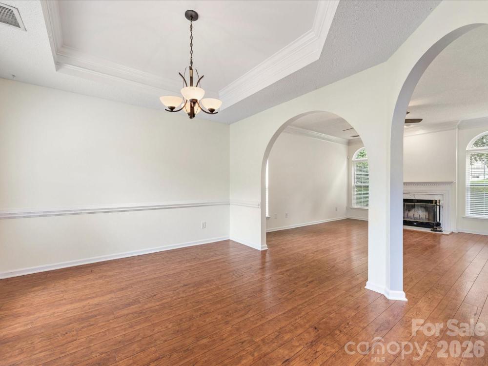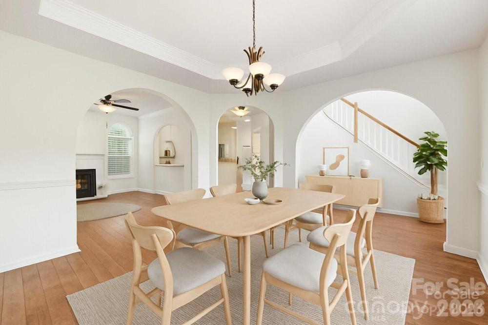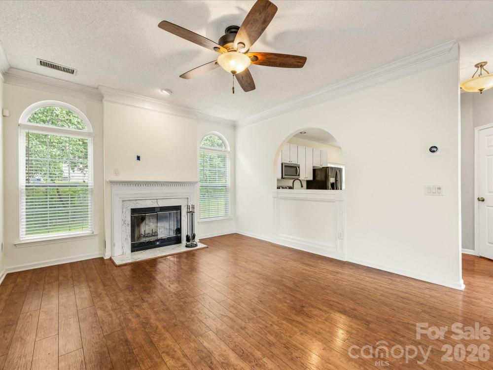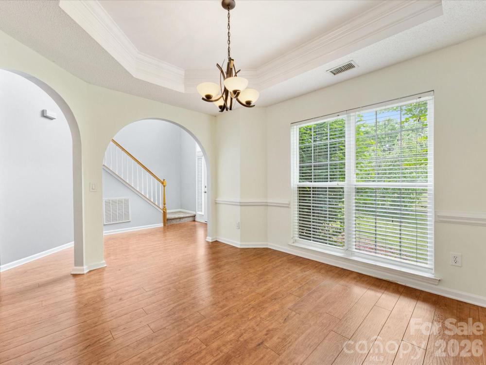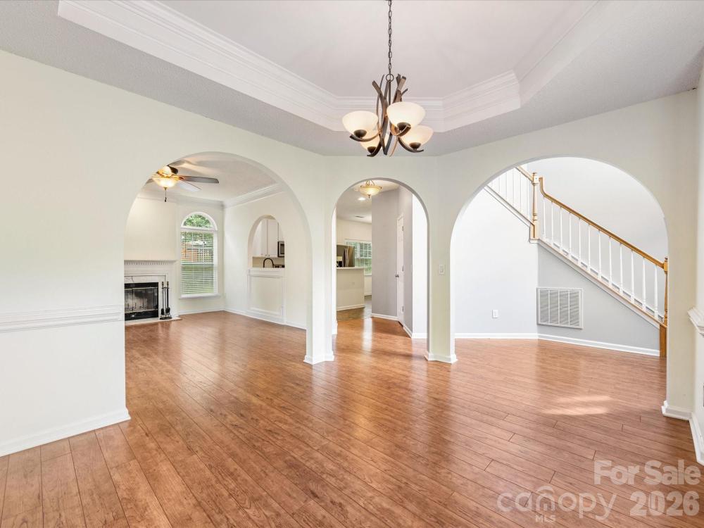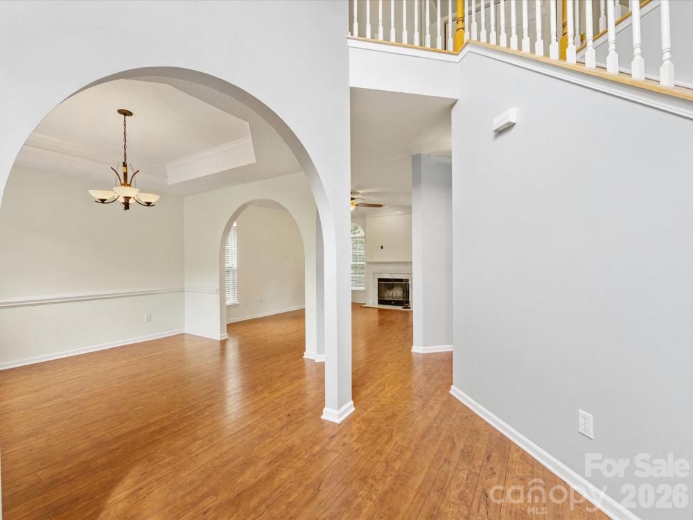 Welcome to this beautifully maintained 4bdrm, 2.5bth home located in the sought-after Clearbrook community, just minutes from Prosperity Village, I-485, & I-85! Step into a bright & welcoming two-story foyer filling the entryway with natural light & a sense of openness. The main level features hardwood flooring throughout, adding warmth & sophistication. The inviting family room centers around a cozy wood-burning fireplace, perfect for relaxing evenings at home. The bright, kitchen is stylish & functional, featuring generous cabinet space, & plenty of room for meal prep & casual dining. Upstairs, is a spacious primary suite complete with tray ceilings, two large walk-in closets, & a well-appointed en-suite bath. Three additional bedrooms offer plenty of space for family, guests, or a home office. Enjoy outdoor living with a covered back porch overlooking a private, tree-lined backyard—a perfect retreat with mature landscaping, a storage shed, & plenty of room for play or gardening.