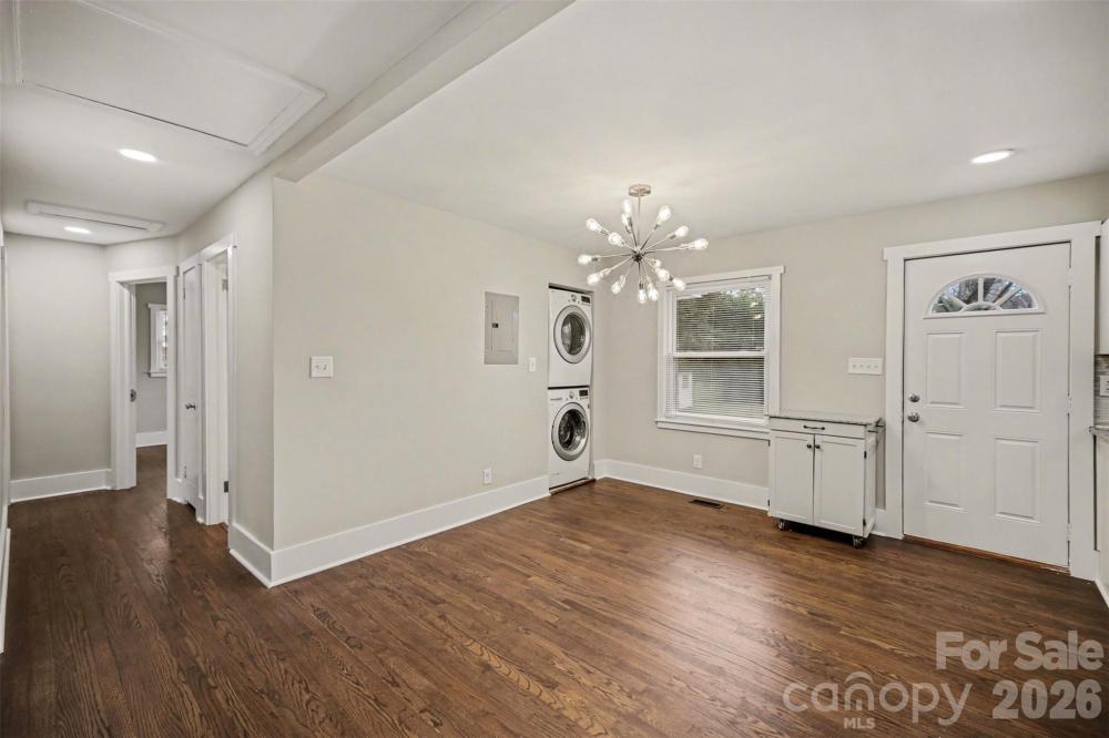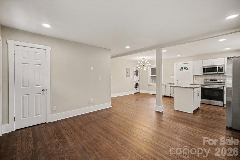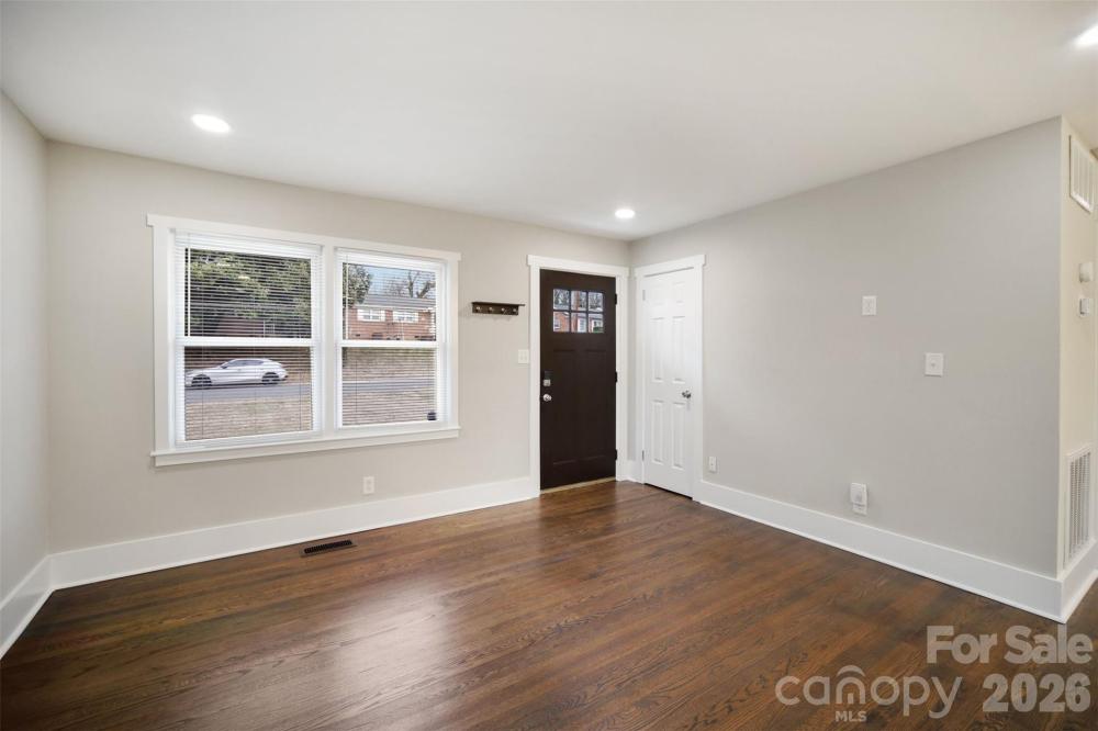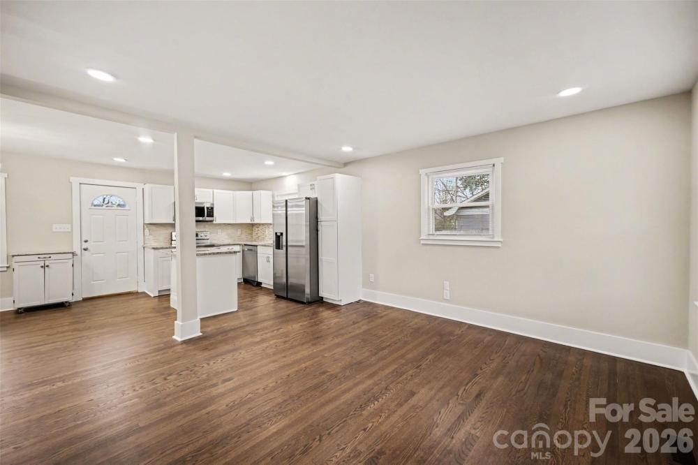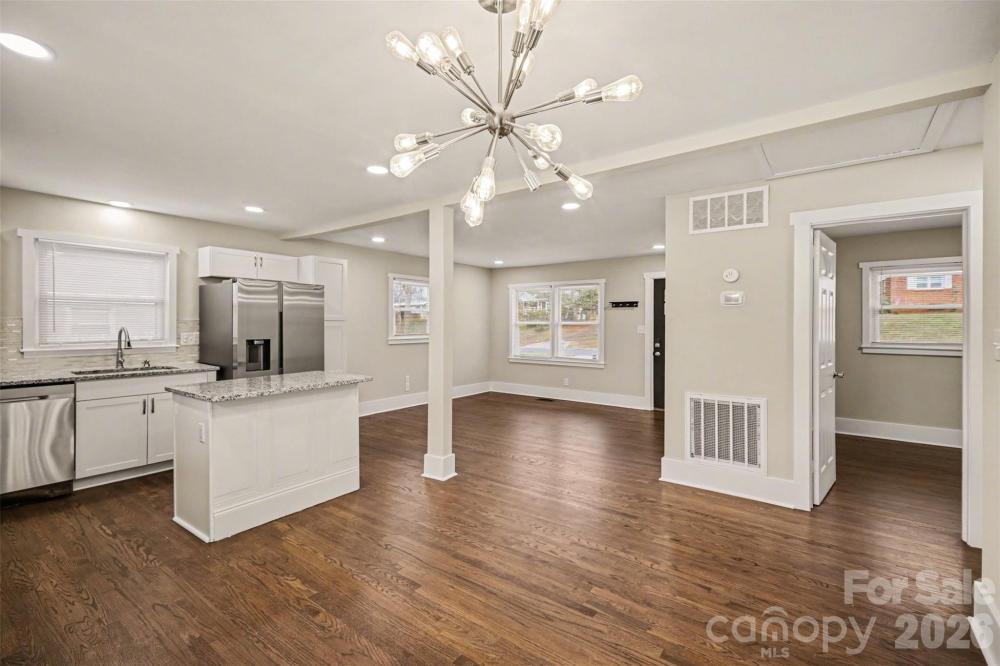 Welcome to 1221 Rollingwood Drive, a move-in ready ranch situated on an impressive 0.42-acre lot just minutes from Uptown Charlotte. This three-bedroom, two-bath home offers 1,096 square feet of thoughtfully updated living space. Refinished original hardwood floors bring warmth and character, while fresh interior paint creates a clean, modern feel throughout. The beautifully renovated kitchen features upgraded appliances and functional design, making it ideal for everyday living and entertaining. Washer, dryer, and refrigerator remain, giving the next owner a true turnkey experience from day one. Major system upgrades provide long-term value and peace of mind, including a new roof installed in 2020, tankless water heater in 2020, and HVAC system replaced in 2021. Buyers can focus on enjoying the home rather than budgeting for large capital improvements. The layout is practical and comfortable, offering well-sized bedrooms and updated bathrooms designed for easy living. Outside is where this property truly stands apart. The oversized 0.42-acre lot offers rare space so close to the city. The fully fenced backyard provides privacy, room to expand, and flexibility for pets, gardening, or outdoor gatherings. A storage shed conveys as-is. The extended concrete driveway and gated backyard access add versatility with ample parking. For first-time buyers, investors, or anyone seeking convenience, land, and long-term value near the heart of Charlotte, 1221 Rollingwood Drive delivers an exceptional opportunity.