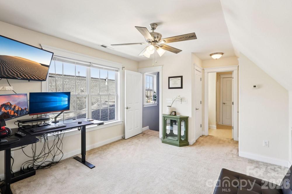 *Multiple Offer situation. Strongest and Best by noon, 2/15/2026* Welcome home to this light-filled, beautifully maintained property offering space, flexibility, and privacy in a peaceful wooded setting — all located in an amenities-rich community. Major updates provide peace of mind, including a new roof (2019), 4-ton HVAC system (2019), and a mini-split system (2024) servicing the bonus/bedroom area for enhanced comfort. The main level features durable luxury vinyl plank flooring and an inviting open layout ideal for everyday living and entertaining. The kitchen shines with granite countertops, abundant cabinetry, and generous prep space. Upstairs, the large primary suite offers a private bath complete with a separate shower, soaking tub, and walk-in closet. The third bedroom/bonus room is huge, providing incredible flexibility for guests, a media room, playroom, or additional living space. The third floor provides the perfect private home office, studio, or retreat space. You’ll also appreciate the convenient walk-out storage area for seasonal items and organization. Step outside to enjoy a covered rear porch as well as an extended patio all overlooking a fenced backyard that backs to mature woods, creating a natural buffer and added privacy. Move-in ready, thoughtfully updated, and perfectly positioned within a vibrant community offering neighborhood amenities — this home truly checks all the boxes.