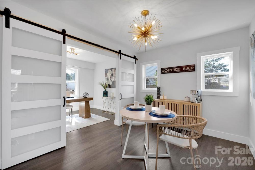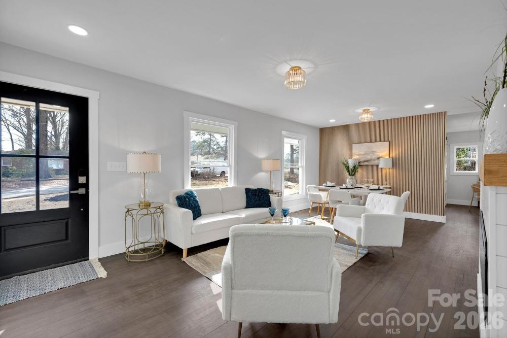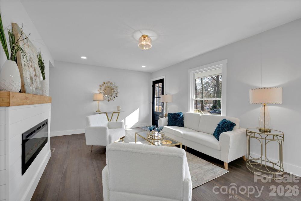 Welcome to 5413 Ruth Drive — a fully renovated brick ranch on a spacious .32-acre lot just minutes from Plaza Midwood and NoDa. This 3-bedroom, 2-bath home offers 1,435 square feet of thoughtfully updated living space where classic charm meets modern design. Original hardwood floors have been carefully preserved and professionally sanded and refinished throughout, creating warmth and character you can feel the moment you walk in. Fresh paint, craftsman trim, updated lighting, and a sleek electric linear fireplace elevate the entire space. The redesigned kitchen shines with all-new cabinetry, countertops, and appliances, plus a stylish flex space with frosted glass barn doors — perfect for a home office, coffee bar, or creative studio. Both bathrooms have been completely remodeled with new vanities, tile floors, updated fixtures, and tile-surround tub/showers. The former half bath has been converted into a private full bath off the primary bedroom, giving the home a true suite-style layout. Major improvements include updated electrical wiring and panel, newer HVAC and ductwork, tankless water heater, vinyl windows, attic insulation, crawl space vapor barrier, and a roof replaced within the past five years — offering modern efficiency to match the fresh aesthetic. Step outside to enjoy the newly built deck overlooking the fully fenced backyard with vertical wood slats. With .32 acres, there’s plenty of room to entertain, garden, relax, or expand your outdoor vision. A newly poured driveway and sidewalk, fresh exterior paint, board and batten accents, updated exterior doors, porch railings, lighting, and finishing details complete the polished curb appeal. Renovated. Refreshed. Move-in ready. Close to some of Charlotte’s most vibrant dining, shopping, and entertainment districts — this one checks all the boxes.
