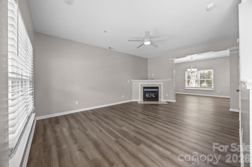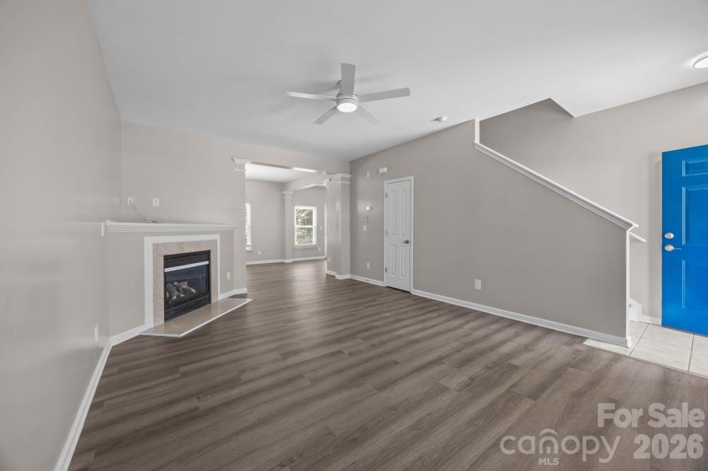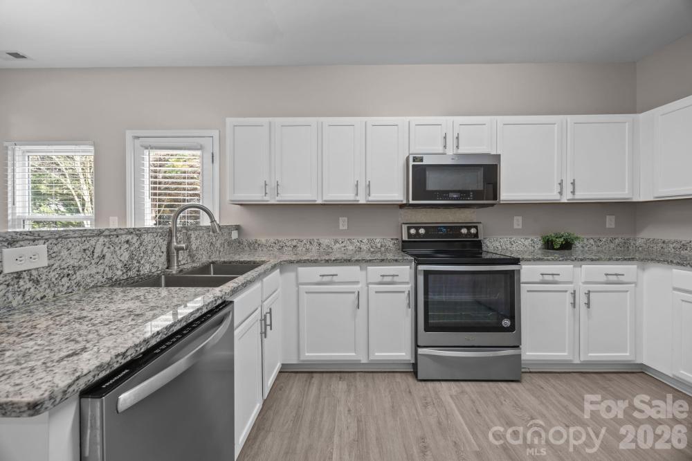 This is it! Charming and move-in ready home featuring numerous recent updates throughout! The kitchen boasts granite countertops, stainless steel appliances, a deep single-basin sink, and a convenient breakfast bar —perfect for entertaining and everyday living. Durable and stylish LVP flooring runs throughout the home, offering both beauty and low maintenance. Upstairs, the versatile loft offers endless possibilities and can easily function as a home office, media room, playroom, workout space, or additional living area to fit your lifestyle needs. The enormous primary suite includes an updated dual vanity, soaking tub and a separate shower in the bathroom, there is also a walk-in closet, providing a comfortable and functional retreat. Two additional spacious bedrooms and full bathroom that has also been tastefully updated. Enjoy outdoor living with a welcoming rocking chair front porch and an oversized back patio ideal for gatherings, grilling, or relaxing. Major system updates provide peace of mind, including new double hung windows (2020), Roof (2023), HVAC system (2024), hot water heater (2025). Conveniently located near shopping (Trader Joe's, Harris Teeter, Concord Mills), dining, parks, and everyday amenities with easy access to major roadways, making commuting simple while still enjoying neighborhood charm. This well-maintained home combines modern updates with inviting living spaces and is ready for its next owner to enjoy!