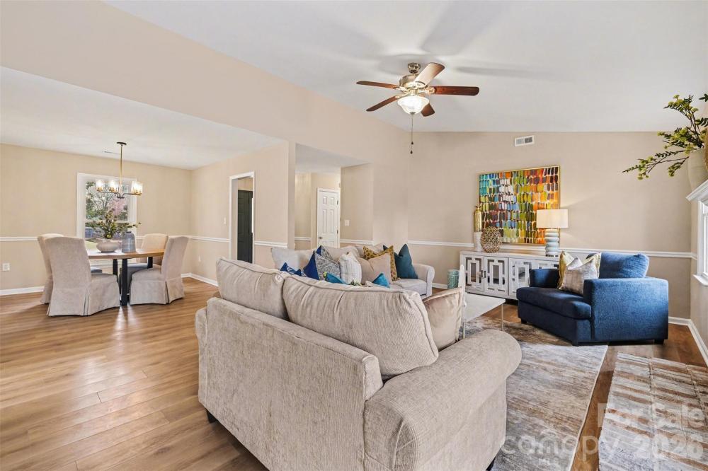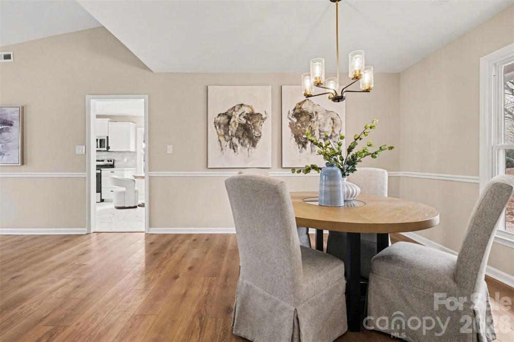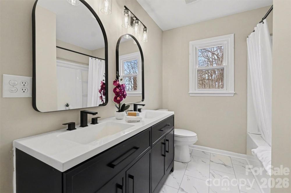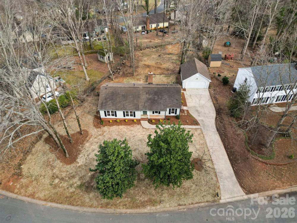 Located in an established neighborhood just minutes from downtown Matthews, this beautifully updated 3 BR, 2 BA home offers space, charm, and an unbeatable location. Set on nearly half an acre, the fully fenced back yard provides privacy and plenty of room to relax, garden, or entertain. Inside, you will find a fresh, modern feel with thoughtful updates throughout. The kitchen has been freshly renovated with new cabinets, quartz countertops, stylish backsplash, and brand new appliances. New vinyl flooring enhances the kitchen and bathrooms, while new carpet adds comfort in the bedrooms. Both bathrooms feature new vanities, mirrors, toilets, updated lighting, and a new tub and shower surround in the hall bath. Fresh interior paint, updated light fixtures, and new closet and pantry shelving make the home truly move in ready. The exterior has also been freshly painted for great curb appeal. The spacious primary bedroom offers a comfortable retreat, and the generous living area is centered around a cozy wood burning fireplace. A covered front porch and rear patio create inviting outdoor living spaces, while the detached two car garage with dedicated work bench area provides ample parking and storage. Located approximately one mile from charming downtown Matthews and just minutes to Providence High School, The Arboretum, Carolina Place, and I-485, this home combines everyday convenience with the character of an established community. With major updates already completed, this is a fantastic opportunity to enjoy a refreshed home on a large lot in one of the area’s most desirable locations!