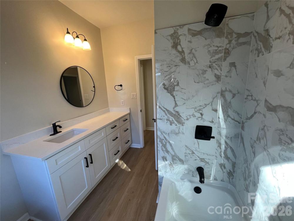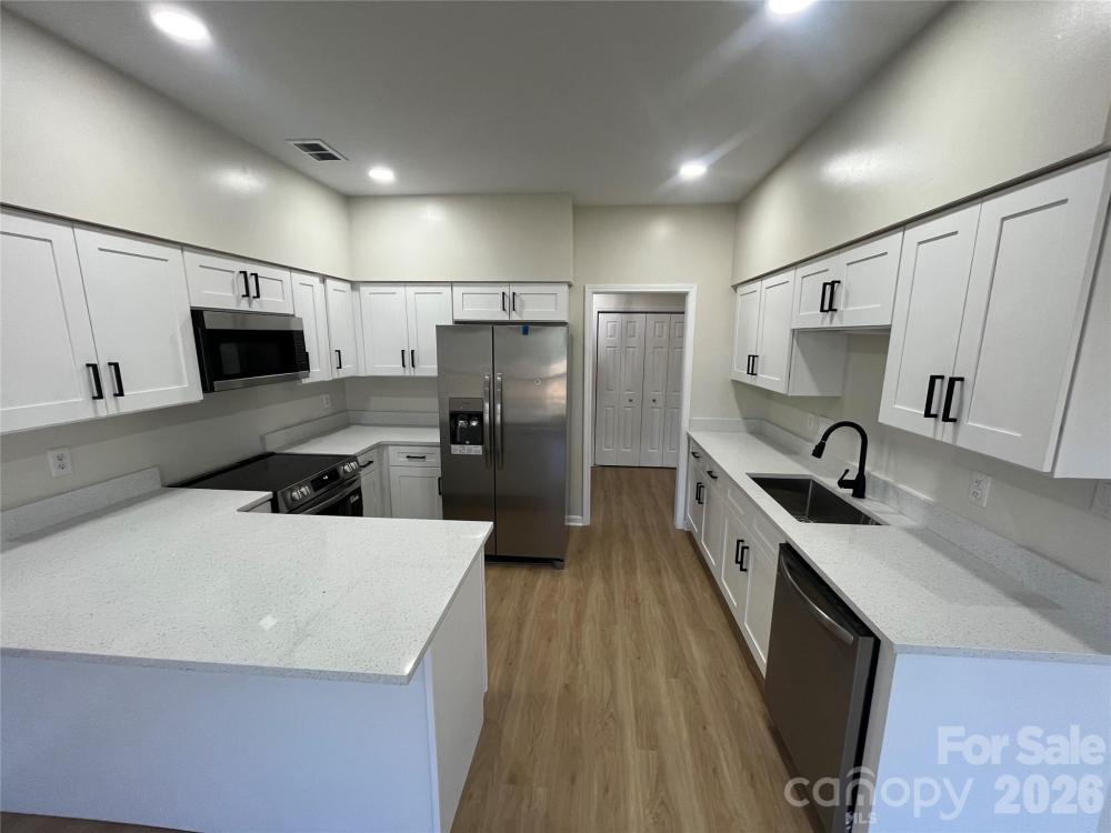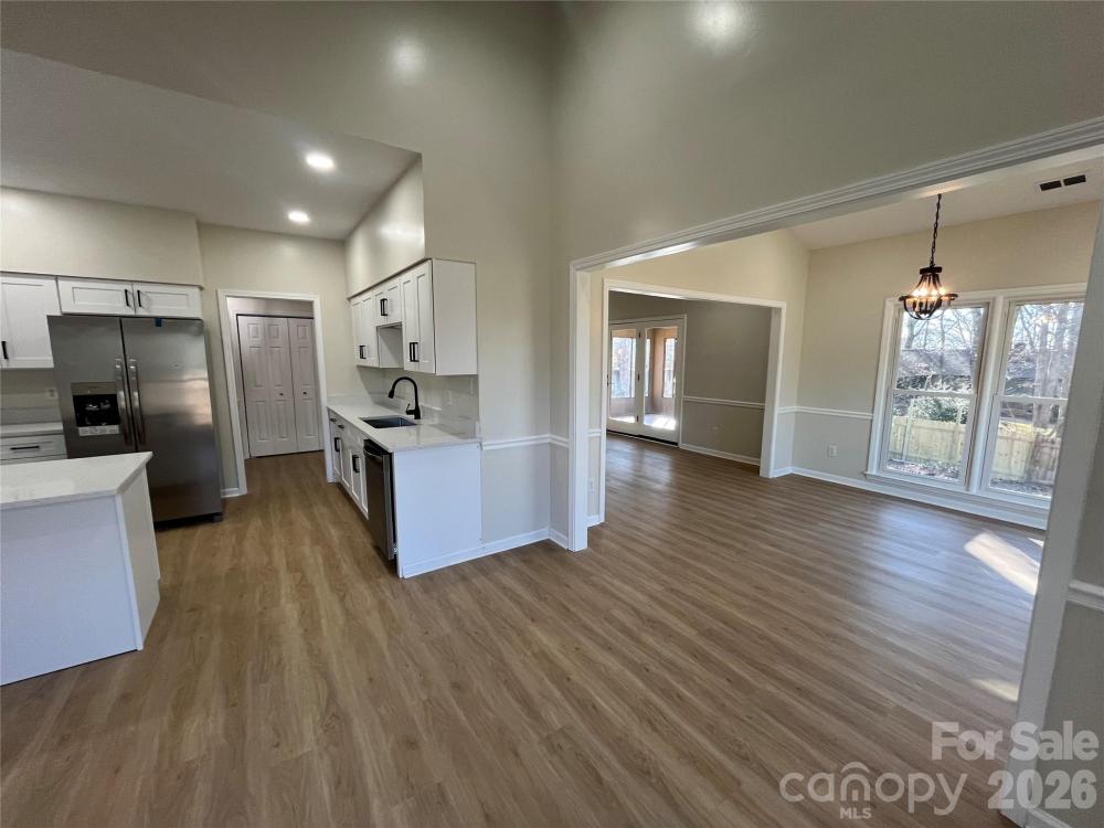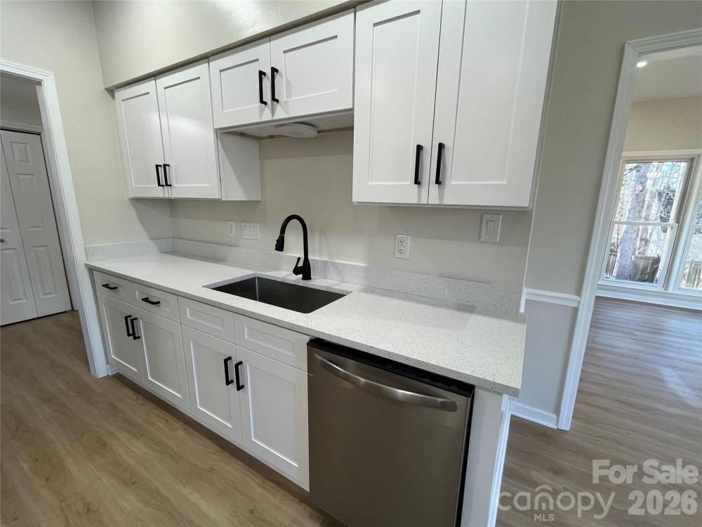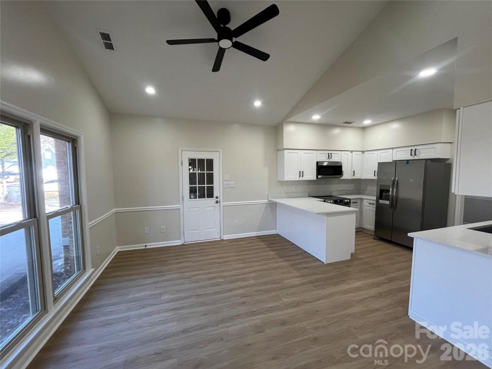 Welcome to this fully updated all-brick home with a side load garage, featuring a bright open floor plan and modern finishes throughout, ideally located just 1 mile from I-485 and Hwy 16 with easy access to parks, greenways, and outdoor destinations including Mountain Island Lake, Latta Nature Preserve, Latta Plantation, and Lake Norman. This move-in ready home showcases high vaulted ceilings, updated modern light fixtures, new recessed lighting, and durable Luxury Vinyl flooring throughout. The stunning kitchen and bathrooms offer new soft-close cabinetry, white quartz countertops, stainless steel appliances, tiled showers, new toilets, and stylish new cabinet and door hardware. Additional upgrades include some windows just replaced, and others are fairly newer, HVAC - 2018, water heater - 2021, fresh interior paint, all complemented by a private fenced backyard—perfect for relaxing or entertaining.