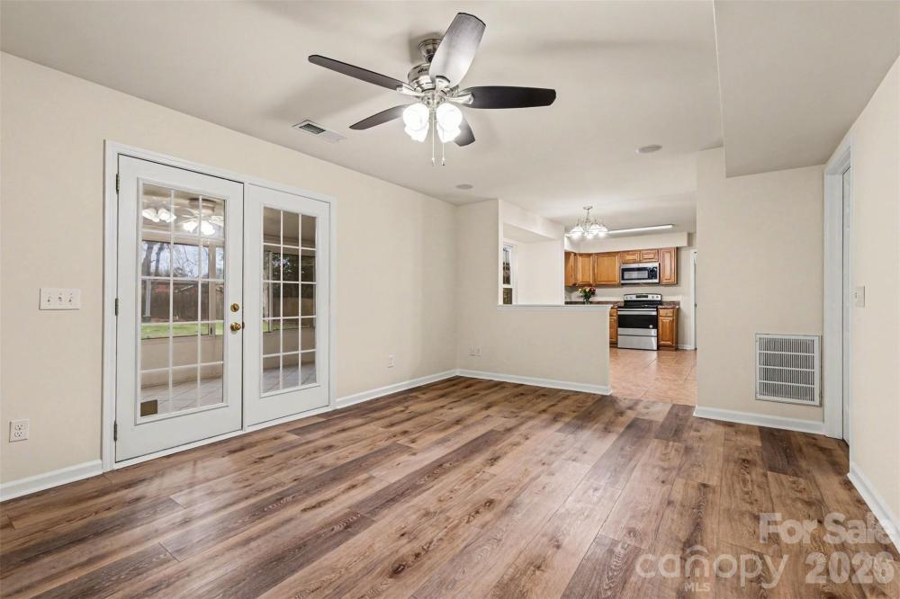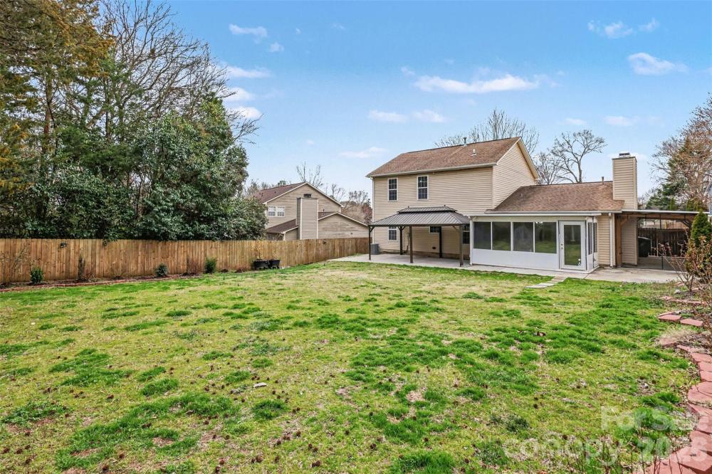 Feshly painted 3 bedroms 3 baths 2 story home with plank flooring throughout the home. NO HOA!!! For your convenience the half bath has been upgraded to a full bath with a shower. The main floor features a good size living room, kitchen, breakfast area separate dining room with double doors opening to the kitchen, living room, and a den with a fireplace and doors to the sunroom. Upstairs you will find the Primary bedroom, and primary bath along with 2 other good size bedrooms. Home qualifies for $10K to be used whichever way is best for the buyer. Call your agent and have them show it to you! Near transportation, I 77, i 485 as well as shopping.