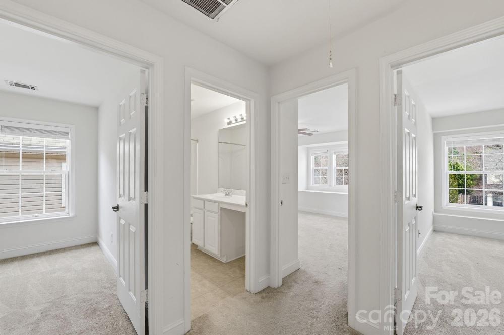 NEWLY RENOVATED with fresh paint throughout all rooms, new laminate wood flooring entire first floor and new carpeting on second floor. Spacious home backed up to an expansive stretch of woods separating your house from other backyards in the subdivision. Large living room upon entry. Office with french doors for privacy at back of house. Family room next to kitchen with gas log fireplace. Breakfast area at back of house overlooking the woods. Ample size kitchen with stainless appliances and brand new double stainless sink with new garbage disposal in island and high counter for food service. Upstairs has a large great room at top of stairs separating master suite from other bedrooms and laundry room. Pull down stairs to attic with some storage space provided. Community pool, close distance to shopping, dining via Steele Creek Rd and South Tryon St. PLEASE TAKE OFF YOUR SHOES OR WEAR BOOTIES BEFORE GOING UPSTAIRS.
