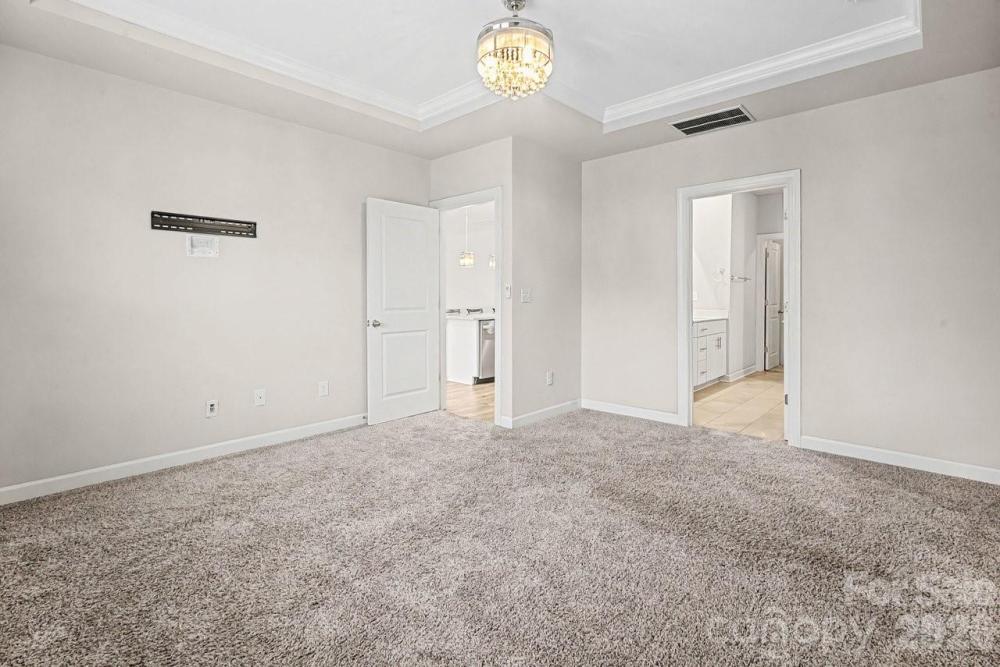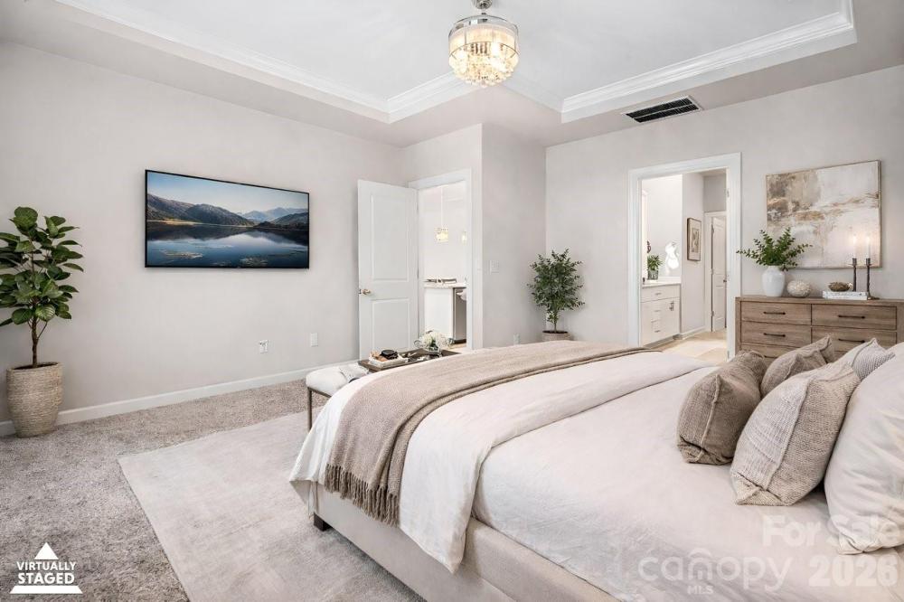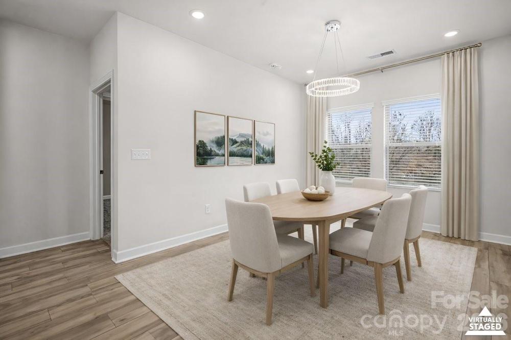 Welcome to 7120 American Elm, located in the desirable Larkhaven Hills community in northeast Charlotte, just minutes from Mint Hill with easy access to major highways for a smooth commute anywhere in the city. Built in 2021, this beautifully maintained ranch-style home offers the feel of new construction without the inconvenience of living in an active construction zone. This three-bedroom, two-full-bath home features a bright open floor plan designed for comfortable everyday living and effortless entertaining. Upgraded vinyl plank flooring flows throughout the main living areas, complemented by granite countertops and modern finishes that give the home a clean, polished look. The custom light fixtures have been thoughtfully selected to elevate the space beyond builder-grade, adding warmth, character, and a stylish touch that truly personalizes the home. The split-bedroom layout provides both privacy and functionality. Two secondary bedrooms are positioned at the front of the home and share a full bathroom, making them ideal for guests, family members, or a home office setup. The primary suite is tucked away from the other bedrooms, creating a private retreat. The spacious ensuite bathroom includes dual vanities, a standing shower, a relaxing garden tub, and customized closet space designed for organization and convenience. As a ranch-style home, everything is conveniently located on one level, making it perfect for someone who prefers to avoid stairs or for a family who wants everyone on the same floor. The layout offers both comfort and accessibility while maintaining a spacious feel throughout. Step outside to the covered back porch overlooking peaceful water views. Whether enjoying morning coffee as the sun rises or unwinding in the evening surrounded by nature, the backyard provides a tranquil setting for relaxation and connection. Residents of Larkhaven Hills also enjoy community amenities including a pool, dog park, children’s playground, and common area spaces designed for gathering, relaxing, and connecting with neighbors. With modern finishes, thoughtful upgrades, water views, resort-style amenities, and a prime location in northeast Charlotte, 7120 American Elm offers the ideal balance of style, comfort, and convenience. Schedule your private showing today.