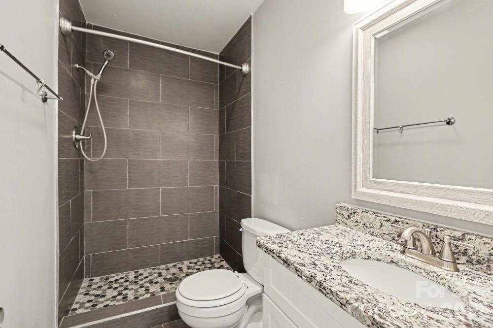 Classic Split-Level Home in Shannon Park. Welcome to this charming, well-maintained brick and vinyl split-level home in the desirable Shannon Park neighborhood. An elegant foyer welcomes you inside, where gleaming original hardwood floors and fresh interior paint enhance the home’s timeless character. The spacious sunken living room w/Large Picture Window is filled with natural light, creating an inviting space for both everyday living and entertaining. The home features a large eat-in kitchen with white shaker style cabinetry, granite counters, large kitchen island, stainless steel appliances, ideal for casual dining and large gatherings. Just off the dining area, French doors open to a bright sunroom, creating a seamless indoor-outdoor feel and offering a relaxing space to enjoy year-round. The lower level offers exceptional versatility, featuring a spacious family room with a wood-burning fireplace, a fourth bedroom, full bath, and a dedicated laundry room w/access to back patio...ideal for guests, multi-generational living, or a private home office. The primary suite is located on the upper level and includes a renovated private bath. Additional bedrooms and 3rd full bath are also on this level providing comfortable accommodations for everyone. Outside, enjoy a fenced backyard with an expansive concrete patio—ideal for entertaining, outdoor dining, or relaxing in a private setting. Situated on a generous lot in an established neighborhood, this property offers an excellent move-in-ready opportunity. The Shannon Park community also features a neighborhood pool available with initiation fee and annual membership dues. Don’t miss the chance to own this affordable, move-in-ready home in this sought-after East Charlotte location.