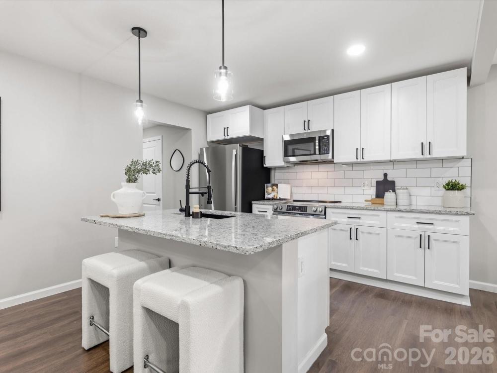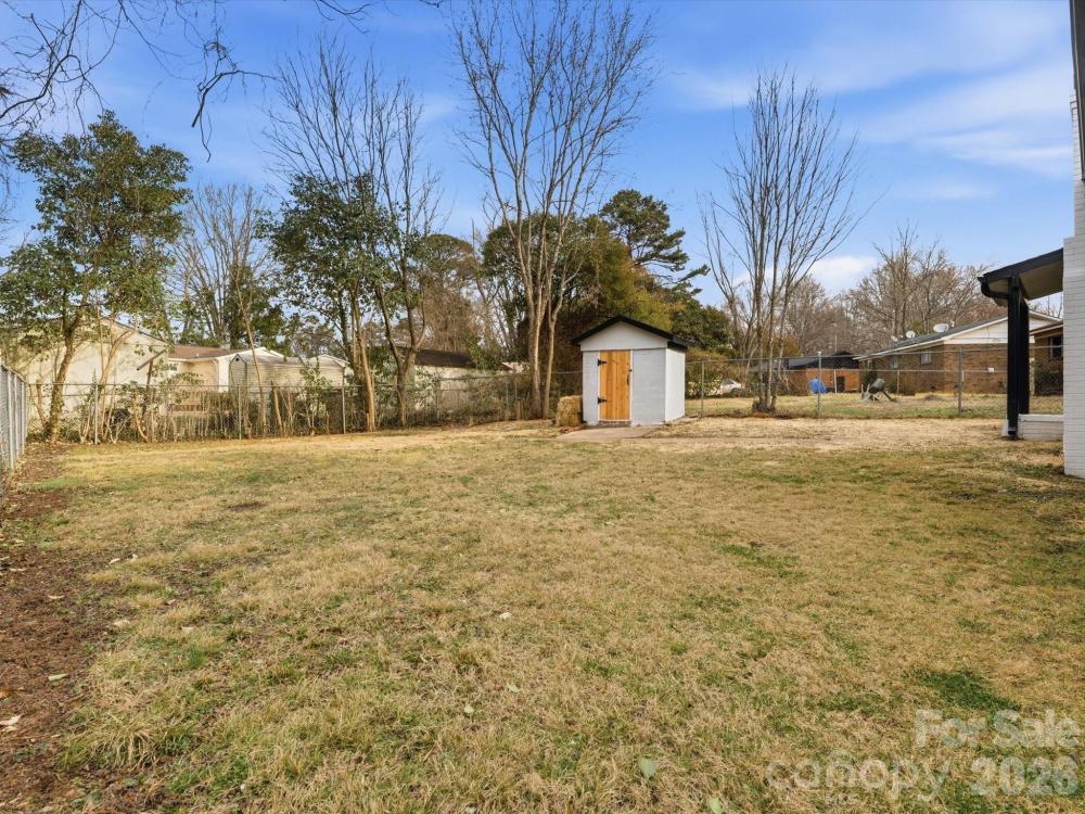Beautifully updated and move-in ready, this home offers a functional open floor plan with modern touches throughout. The kitchen features new cabinets, complemented by updated bathrooms and new LED lighting across the home. The spacious primary bedroom includes its own fireplace and an oversized closet for ample storage. Enjoy outdoor living in the fenced backyard with a storage shed, plus the convenience of an oversized carport. Ideally located less than 2 miles to I-77, about 15 minutes to Uptown Charlotte, and 15 minutes to the university.