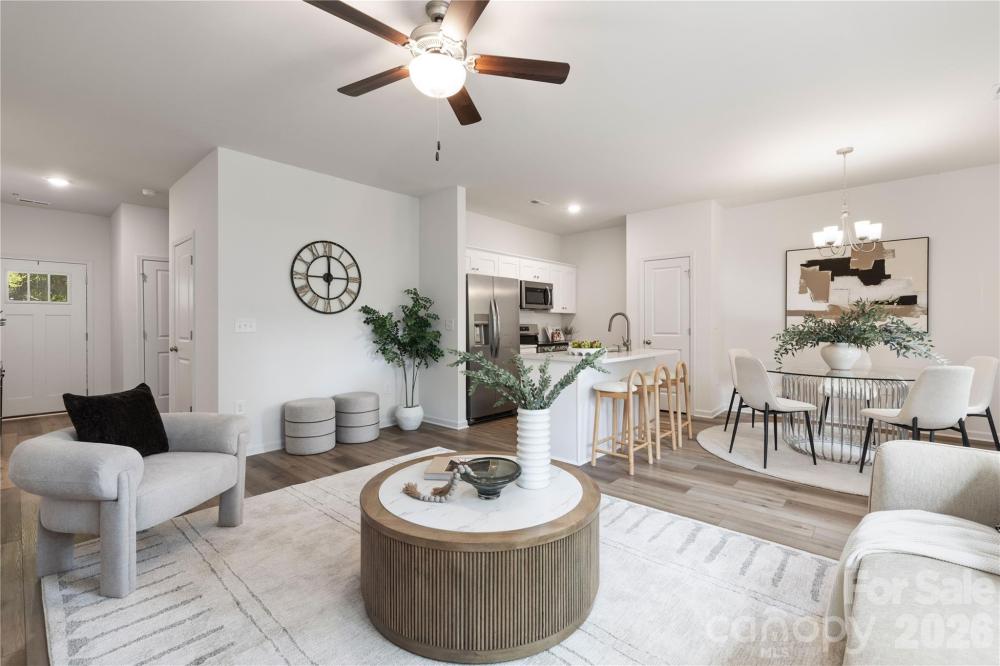 This beautifully crafted home offers a fresh take on comfortable living in north Charlotte, just minutes from I-77 for an easy drive into Uptown. With over 1,200 square feet, this 3-bedroom, 2-bath floor plan is designed to maximize space while maintaining a warm, welcoming feel. The open layout creates effortless flow between the living, dining, and kitchen areas—ideal for both daily routines and hosting friends. The kitchen provides abundant cabinetry, ample prep space, and a pantry for added storage, while a nearby utility area enhances everyday functionality. The private primary suite features a walk-in closet and its own full bath, and two additional bedrooms offer versatility for guests, a home office, or hobbies. Conveniently positioned near shopping, dining, parks, and major roadways, this home combines smart design with a prime Charlotte location.