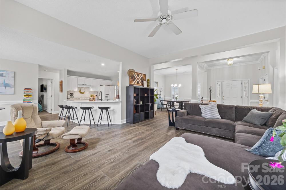 Welcome home to this beautiful split-bedroom ranch offering 3 bedrooms, a dedicated office, and 2 full bathrooms thoughtfully designed for comfortable, single-level living. This move-in ready home features new flooring, upgraded 5" baseboards throughout, and a modernized kitchen with quartz countertops and elegant gold hardware. The open and functional layout provides inviting living spaces perfect for both everyday living and entertaining. The primary suite offers an upscale walk-in shower and custom closet. Two additional bedrooms are positioned on the opposite side of the home, while the dedicated office provides the perfect space for working from home, studying, or a quiet retreat. Step outside to the private backyard featuring a paver patio and covered outdoor space that is ideal for entertaining or relaxing evenings at home. New roof installed in 2024. Conveniently located near Rivergate Shopping Center and Charlotte Premium Outlets, and just 25 minutes to Charlotte Douglas International Airport.