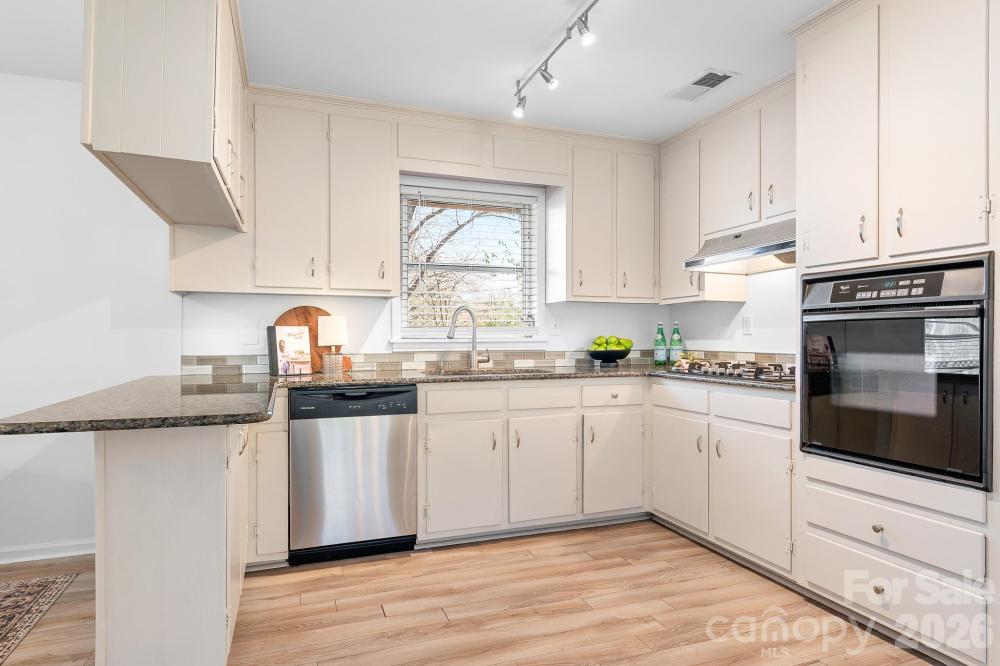 Move-in ready and tucked into the desirable NO-HOA community of Coulwood Hills, this full-brick ranch blends timeless charm, thoughtful updates and an unbeatable location. Just 15-20 minutes from Uptown Charlotte, 183 Kingsway Cir offers the perfect balance of city convenience and everyday affordability. Lovingly owned by the same family since 1963, this 3-bedroom, 2 full-bath home beautifully blends original character with modern touches. Gorgeous hardwood floors and FRESH PAINT THROUGHOUT, create a clean backdrop ready for your personal style. The thoughtful floor plan offers an open, comfortable feel while maintaining distinct living spaces with seamless flow between rooms. A welcoming foyer opens to a spacious living room filled with natural light. The kitchen features granite countertops, a GAS COOKTOP, wall oven, and a stylish tile backsplash accent. It opens easily to both the dining room and the lovely den, creating the perfect space for gathering and entertaining. The den showcases a vaulted ceiling and a stunning floor-to-ceiling brick fireplace with gas logs, adding warmth and character to the home's inviting atmosphere. The spacious primary bedroom has a private, updated ensuite bath with tile shower. The secondary full bath offers white tile, two sinks and a linen closet. If the outdoors are more your style, you'll love the freshly painted, huge rear deck overlooking the usable, flat backyard. Practical features add even more value, including the city water with septic, helping keep monthly utility costs lower (with the option to connect to the city in the future). Situated on a generous lot with mature trees, the home is part of the hidden gem community of Coulwood Hills, known for is spacious lots and quiet streets. Residents have the option to join the neighborhood pool and clubhouse, and nearby Coulwood Park offers a playground, running track, picnic area and more. Convenience is unmatched with easy access to I485, Charlotte Douglas International Airport, shopping/dining, and the U.S. National Whitewater Center. Come experience the comfort, character, and location that make this home truly special. You'll love living here. Open House Saturday, March 7 from 11am-1pm.